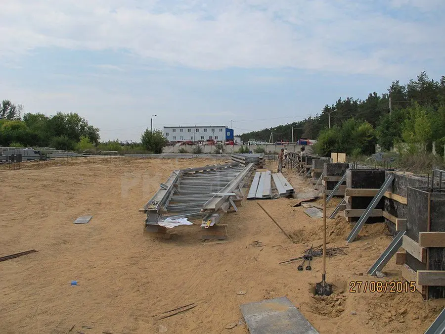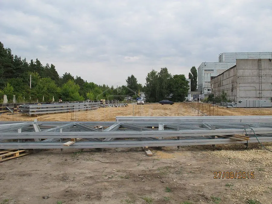ПК «Веста» объявляет о начале монтажа быстровозводимого склада в г. Воронеж, Россия (21Ш х 54Д х 7.70В - Серии INDI) Была подготовлена строительная монтажная площадка. Клиент выбрал классический буро набивной фундамент с последующей заливкой 200мм плиты. Все колонны, фермы и прогонная часть из холодногнутых оцинкованных профилей (С350, I класс цинкования, 275 г/кв.м.) были удобно складированы для последующего монтажа облегченного быстровозводимого стального каркаса. Монтаж полнокомплектного здания из негорючих сэндвич панелей планируется закончить к концу сентября.