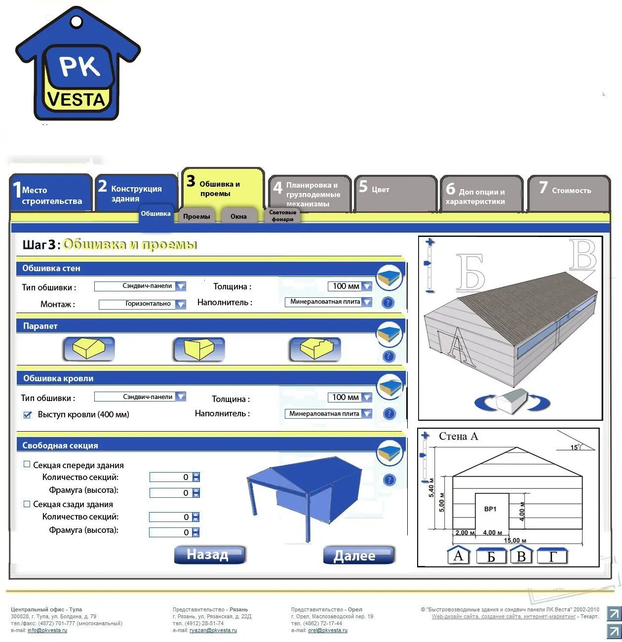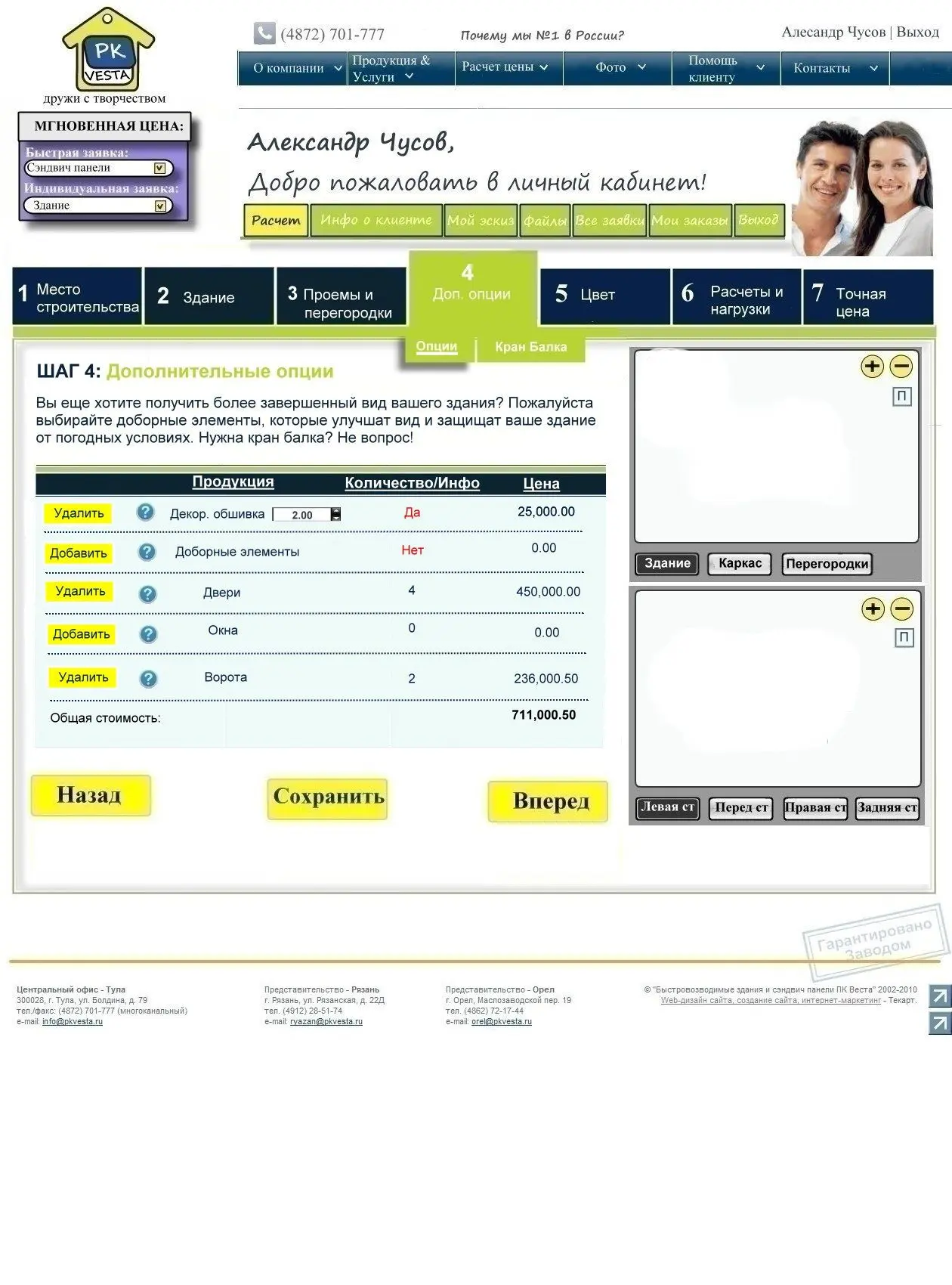Приносим благодарность всем, кто косвенно или прямо участвовал в создании уникального проекта WebSteel, включая первых клиентов, решивших заказать быстровозводимые здания через систему он-лайн проектирования. Особую благодарность приносим маркетинговой группе Текарт, которая на протяжении долгих лет успешно сотрудничает с ПК «Веста».