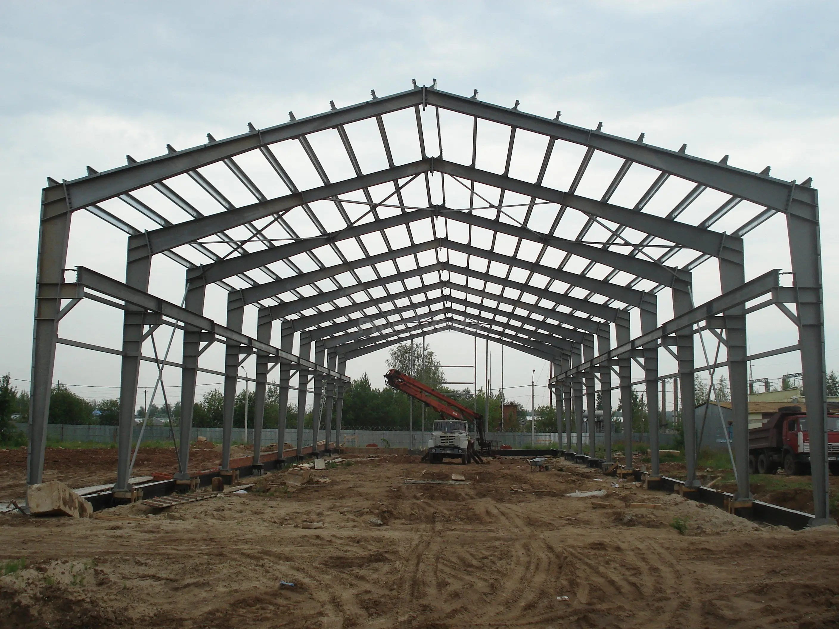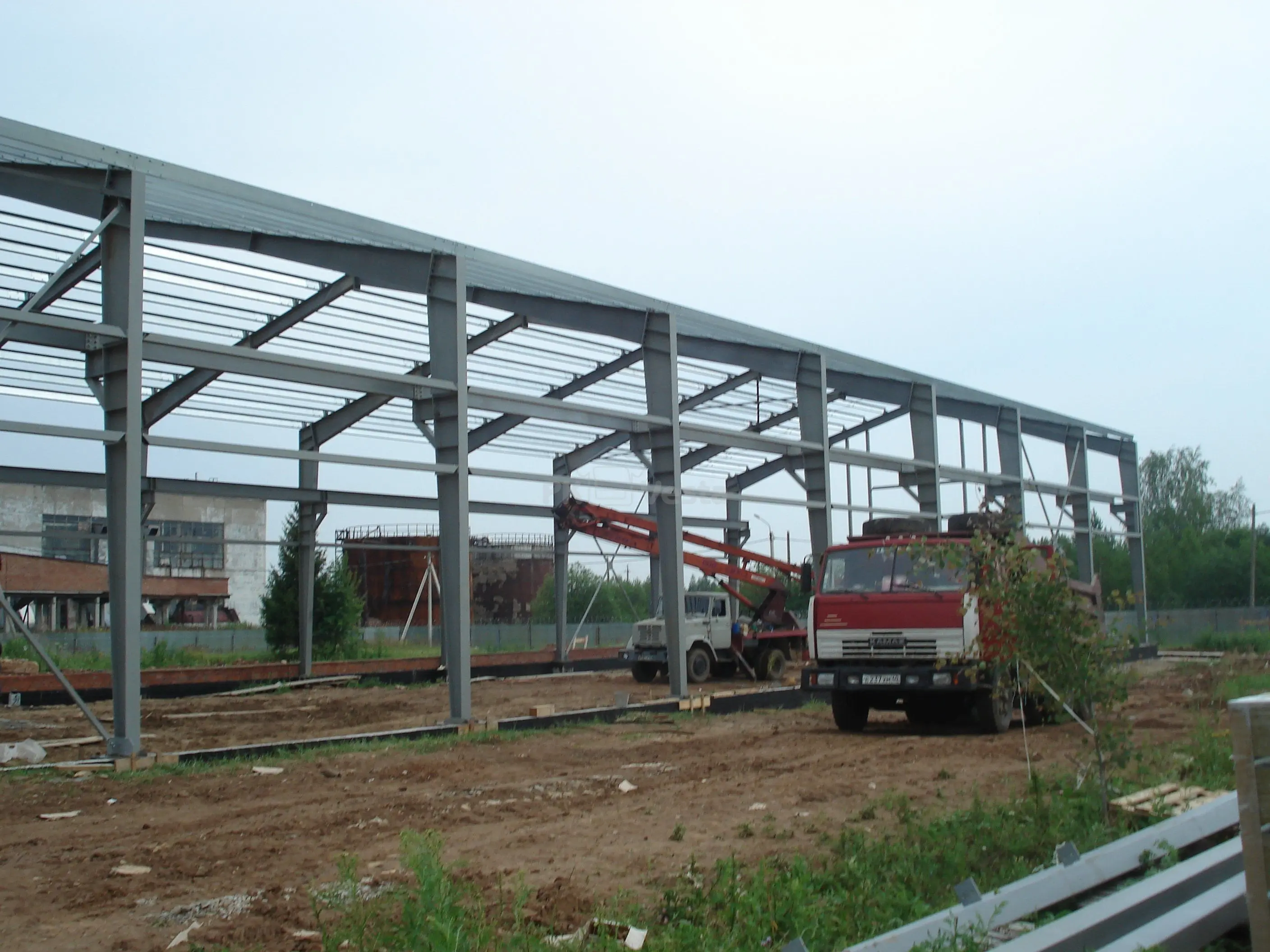 Монтаж здания почти завершен. Это будет цех для изготовления сэндвич панелей с двумя зонами кран балок. Компания заказчик – организация с многолетним опытом работы в России и за рубежом, решившая диверсифицировать свой бизнес.