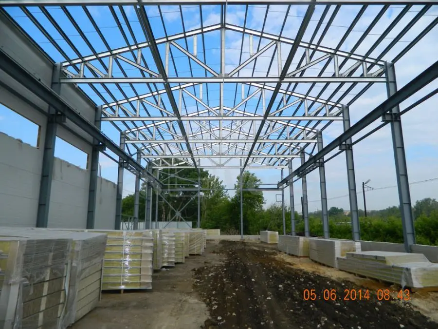ПК "Веста" объявляет о начале монтажа быстровозводимого производственного цеха в г. Саранск, Россия (18Шх78Дх8В, 15 гр.). Полнокомплектное здание из сэндвич-панелей состоит из стального легкого каркаса на базе современной строительной гибридной технологии (сочетание сварных колонн из черного металла и холодногнутой оцинкованной трапециевидной фермы). Для изготовления этих элементов используются качественные марки стали (колонны - С245, ферма - С350). Вся прогонная часть выполнена из оцинкованных профилей (С-обр. и Z-обр.), что позволяет минимизировать общий вес здания, а значит, сократить расходы.