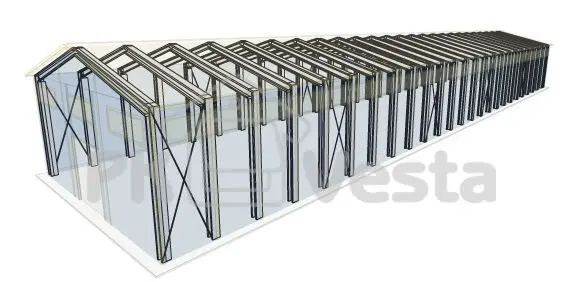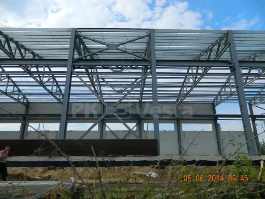 Быстровозводимый цех был спроектирован и рассчитан в БЕСПЛАТНОЙ онлайн-системе WebSteel, доступной на рынках России, СНГ и стран Средней Азии. На базе новейшей концепции ACTIVE IMAGINATION клиенты через Интернет сами создают индивидуальный образ постройки, в соответствии с которым ПК "Веста" изготавливает полный комплект здания на собственном заводе.