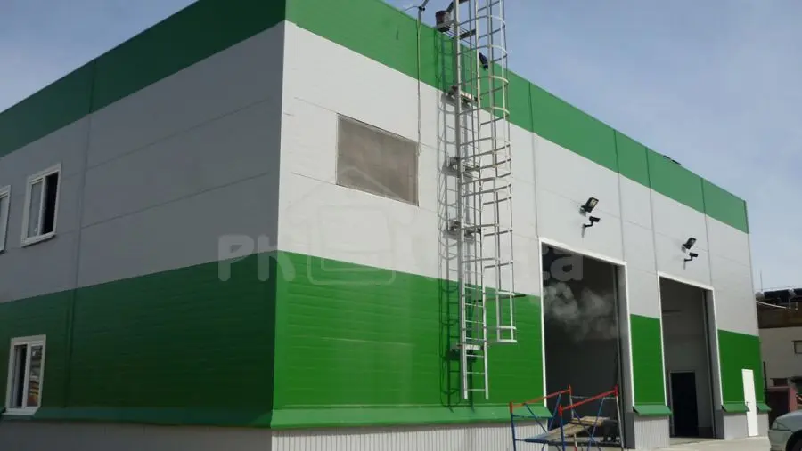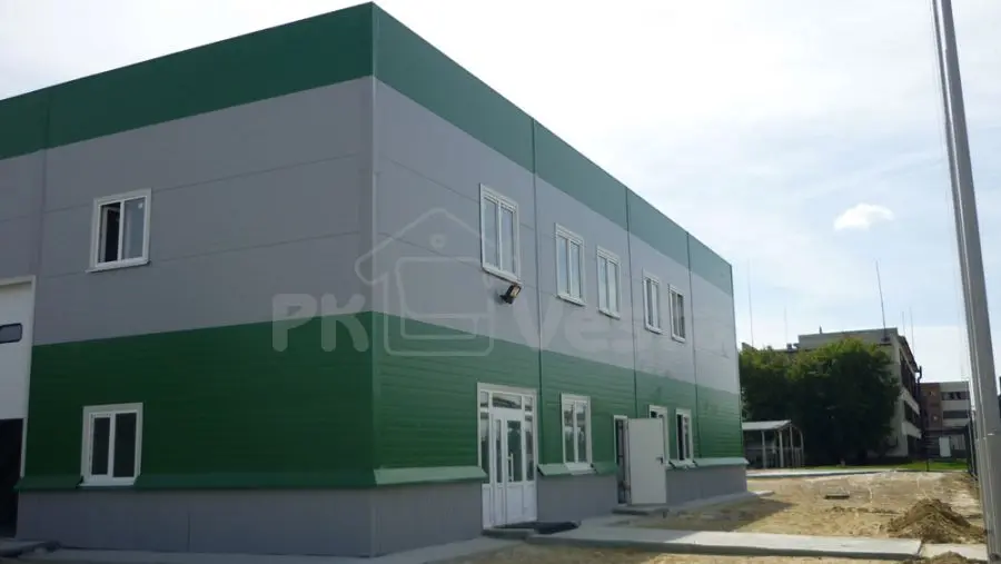 Быстровозводимое здание из легких металлоконструкций базируется на сварной балке переменного сечения. Вся прогонная часть была изготовлена из холодногнутых оцинкованных профилей. Элементы из черного металла - пройдут процесс горячего цинкования!