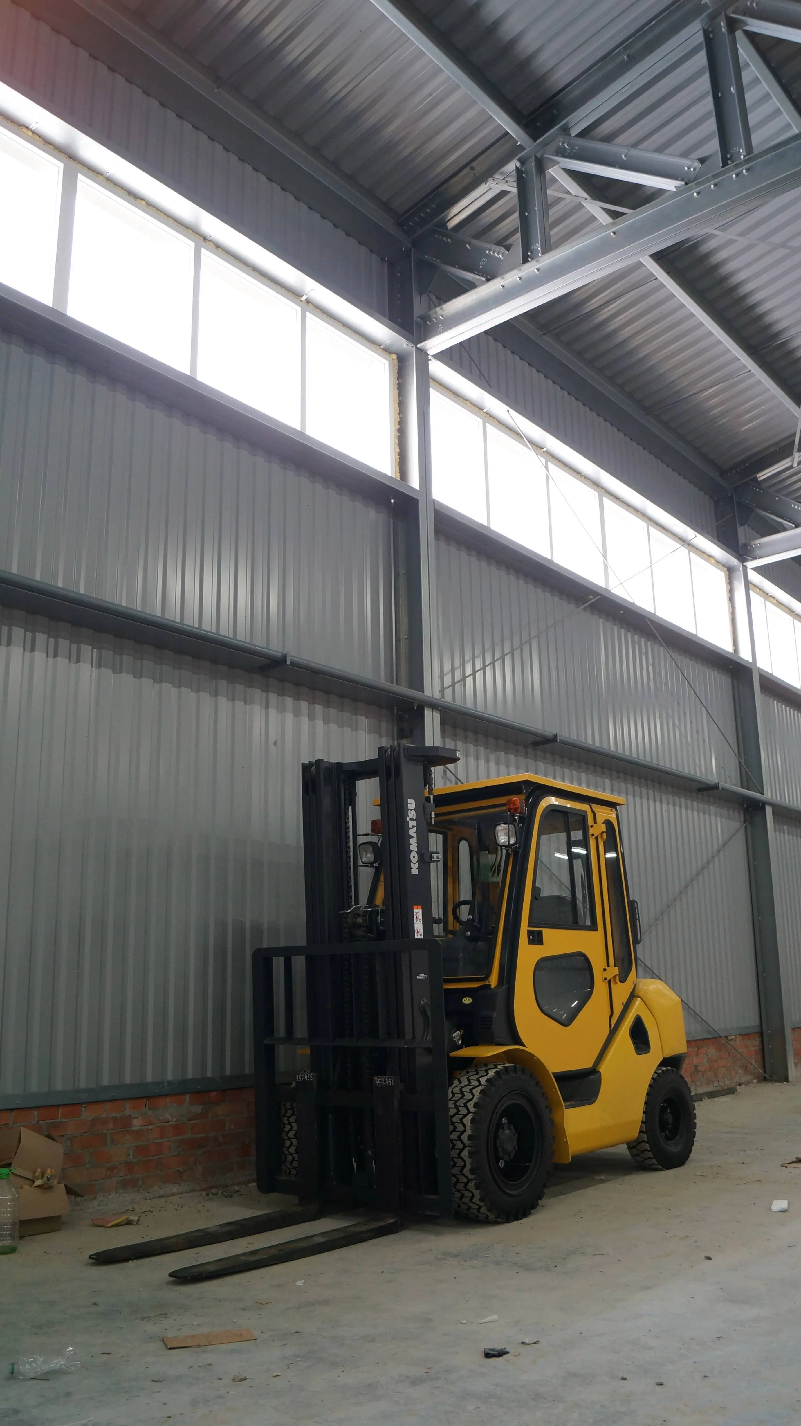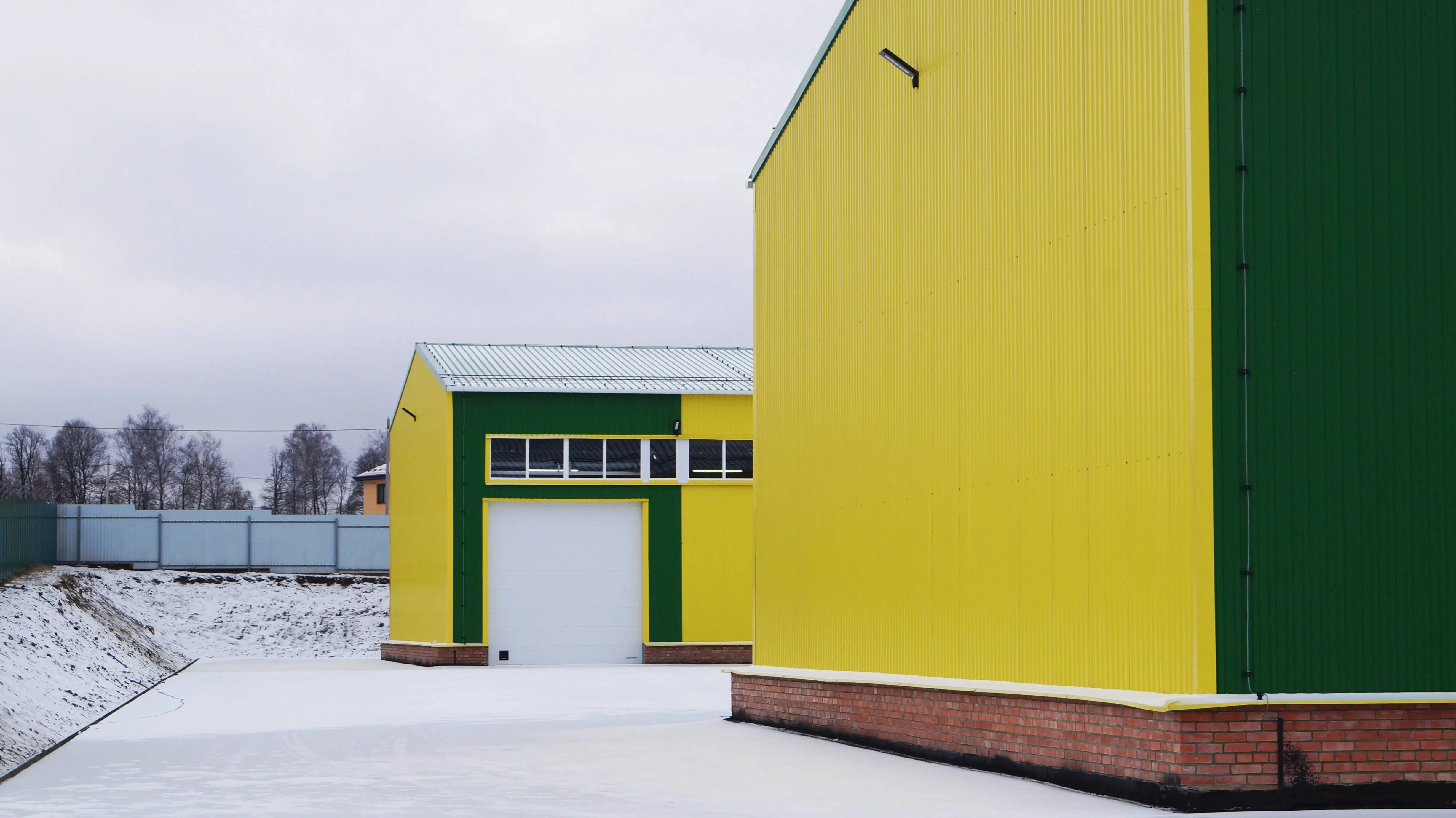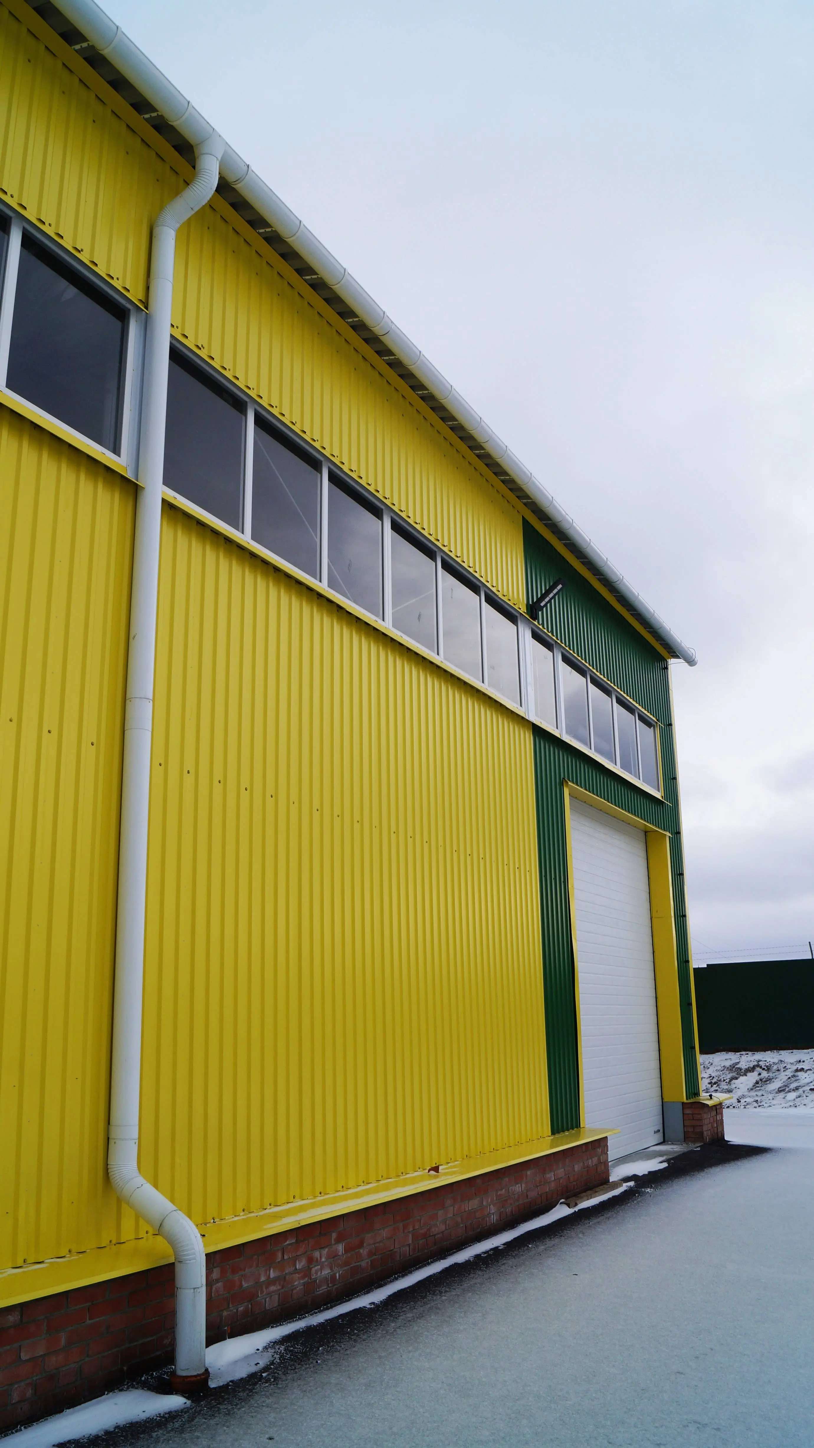 После завершения проекта клиент остался крайне довольным. Полный комплект двух складов 18Ш х 72Д х 7В был изготовлен на Тульском заводе и поставлен в срок «вплоть до болтов и саморезов» Стальной каркас был спроектирован полностью на базе самой современной технологии ЛСТК (все колонны, фермы и прогоны – сделаны их холодногнутых оцинкованных профилей) и обшит профилированным листом. Дизайн проект учитывал 2 основных цвета: желтый и зеленый. Здания предназначаются для розничной торговли. Вдоль стен установлены габаритные секционные ворота 4х4.2 с калитками и ленточные оконные проемы для лучшего освещения. Внутри здания планируется разместить 5и ярусную стеллажную систему.