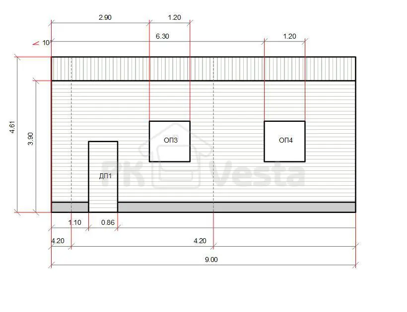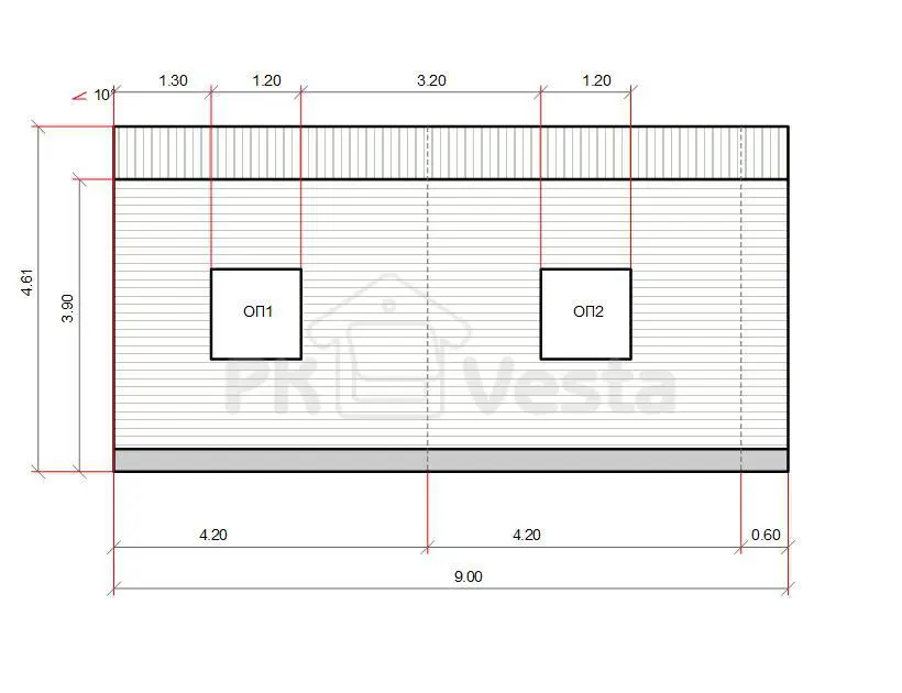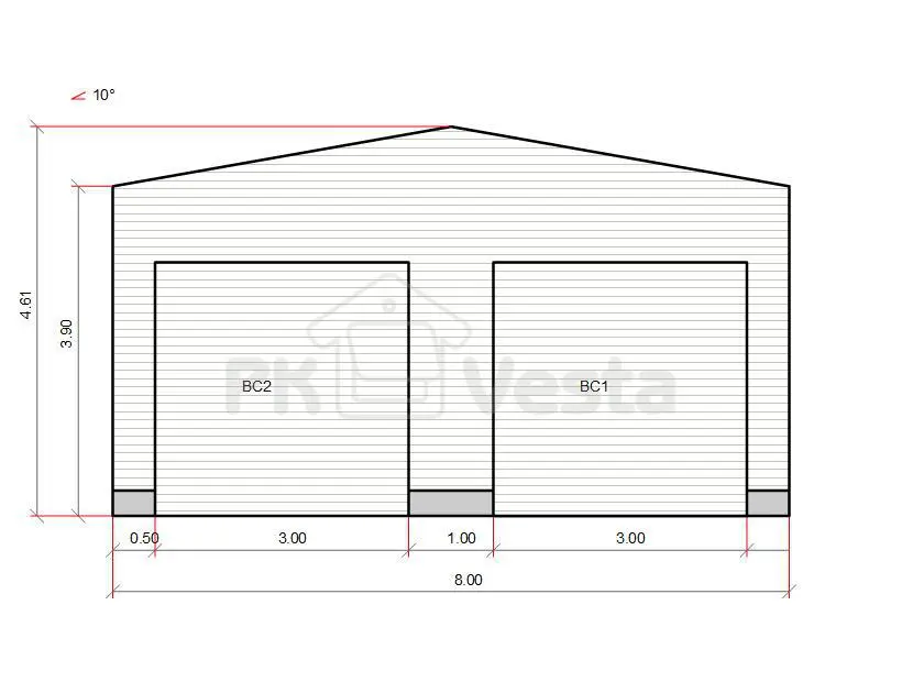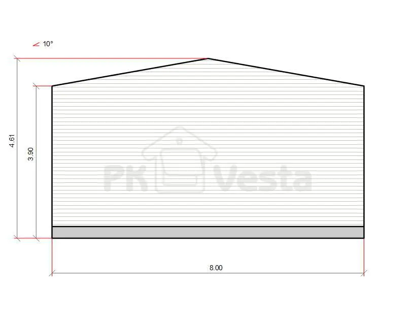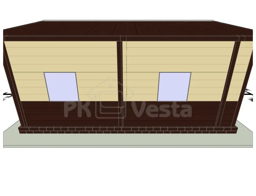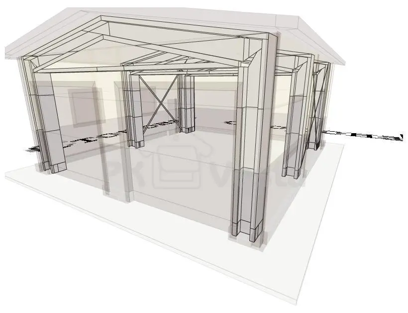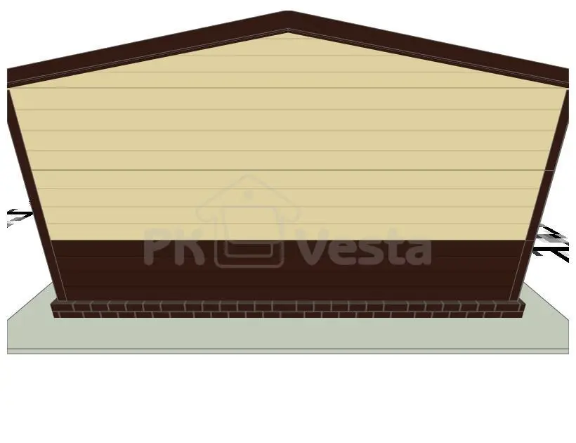 В комплект здания включены негорючие сэндвич панели (КСП-100мм, ССП-100мм) со всеми фасонными и крепежными элементами. В торце здания установлены двое секционных ворот 3х3. По длинной стороне присутствуют двое окон 1.2х1.2.