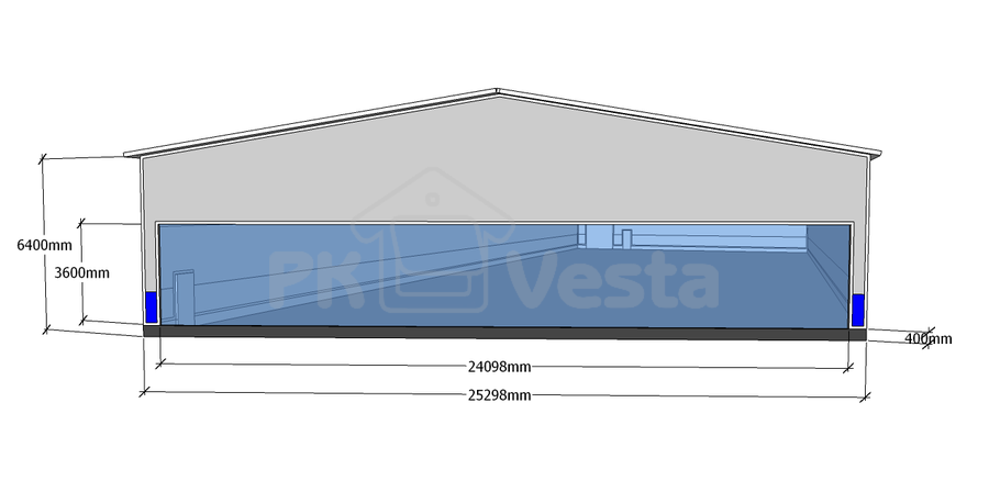 ПК «Веста» объявляет о заказе быстровозводимого магазина из легких металлоконструкций 24Ш х 63Д х 6.4В пошаговой доступности в г. Дагестанские Огни, Россия. В связи с нехваткой времени и подготовки к новому 2018 году клиент решил расширить линейку собственной сети универсальных магазинов пошаговой доступности (продуктовые, хозяйственные товары) на территории Кавказа. Учитывая неправильную форму пятна застройки на территории клиента, основное полнокомплектное здание было разбито на две части: правильной формы ЛСТК (24 х 50) на базе холодногнутых оцинкованных профилей и треугольника из ЛМК (13 х 13 х 5.2) на базе классической сварной балки из чёрного металла. Единое здание будет обшиваться негорючими сэндвич панелями (минвата) с толщиной 100мм для стен и 150мм для кровли. В комплект здания входят все крепежные и фасонные элементы. Цветовое решение - выбрано классическое (сочетание синего, белого и светло серого) Фундамент планируется столбчатый с фундаментной балкой по периметру. Полы будут заливаться (с толщиной около 200мм и нагрузкой до 2/кв.м.) после монтажа быстровозводимого здания. Изготовление комплекта здания будет завершено к концу 2017г. Монтаж планируется завершить к середине февраля 2018г.