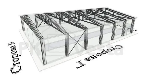 Полнокомплектное здание было рассчитано и спроектировано в бесплатной инновационной системе WebSteel.