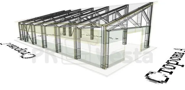 ПК «Веста» объявляет о заказе односкатного быстровозводимого промышленного цеха и мини-склада (12Ш х 24Д х 7В макс) в г. Калуга. Организация занимается изготовлением и продажей электронного оборудования по всей России и СНГ. В целях расширения производства и выделения небольших дополнительных складских помещений компания решила купить комплект быстровозводимого здания в ПК «Веста». Несущая часть сооружения (колонны, балки и прогонная система) основывается на холодногнутых оцинкованных профилях (С350, I класс цинкования 275 г/м2). Стальной каркас обшивается стеновыми (100 мм) и кровельными сэндвич-панелями (120 мм) для ускорения монтажа (vs. полистовой сборки). Все крепежные и фасонные элементы включены в комплект быстровозводимого здания. В нем планируется установить стеллажи высотой 2.6 м, часть оборудования и сделать сквозной проезд. Проект является уникальным из-за одного ската. Обычно в таких зданиях используют сварную балку (черный металл), и они выходят дороже на 40-50%.