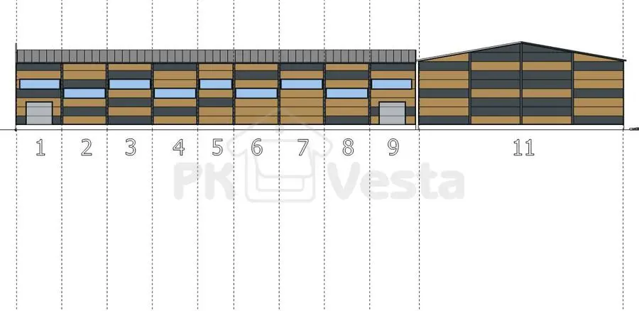 ПК «Веста» объявляет о заказе быстровозводимого спортивного зала (комплекс, состоящий из двух полнокомплектных зданий: 18Ш х 52Д х 8.2В и 27Ш х 52Д х 8.5В) в г. Черкесск, Россия. Строительство спортивного комплекса с разными функциональными зонами (под тренировочный зал, ресторан, кафе, мини офисы и т.д.) будет базироваться на современной гибридной системе, объединяющая 2 самые известные строительные технологии: ЛМК (классическая сварная балка из черного металла) и ЛСТК (холодногнутые оцинкованные профиля) Несущий каркас из легких металлоконстуркций рассчитывался с учетом сейсмичной активности в 8 баллов, II снега (120 кг/кв.м.) и IV ветра (67 кг/кв.м.) Все стальные конструкции будут обшиваться типичными негорючими утепленными сэндвич панелями (КСП - 150мм и ССП-120мм) В комплект здания по умолчанию включены все фасонные и крепёжные элементы. Фасадные решения клиент выбирал сам и сделал акцент на сочетание нескольких цветов в шахматном порядке (синего, светло серого и фисташкового - RAL 7004, 1014, 1036 и 7011) Здание с выбранными параметрами обладает превосходными антикоррозионными, звуко- и теплоизоляционными свойствами.