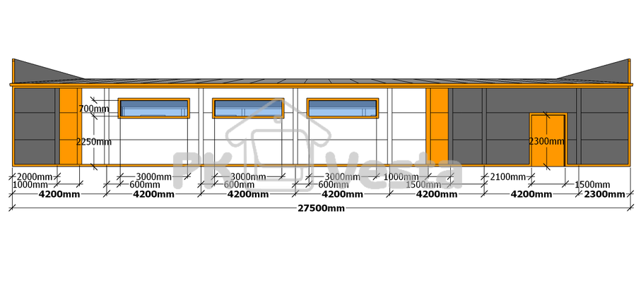 ПК «Веста» объявляет о завершении монтажа быстровозводимого офиса 11.6Ш х 27.5Д х 4.8В серии INDI (на базе ЛСТК - легких стальных металлоконструкций) в г. Тула, Россия. Для комплекта здания были применены яркие цвета в соответствии с брендом компании и ее цветовой гаммы (оранжевый, светло-серый и серый) В комплект здания были включены все негорючие сэндвич панели (с минватой), фасонные и крепёжные элементы. Объект был смонтирован в рекордные сроки в течение 3 недель. Несущий стальной каркас был спроектирован полностью на базе 100% болтового соединения без необходимости применения тяжелой высотной техники. Внутри все будет обшиваться пожаростойким гипсокартоном с установкой подвесных потолков. Офис был изначально рассчитан конечным клиентом в бесплатной онлайн системе WebSteel.