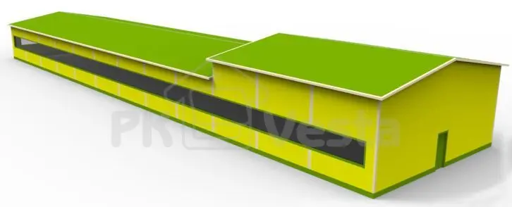 ПК «Веста» объявляет о завершении монтажа быстровозводимого пищевого цеха в Московской области (12Ш х 50.4Д х 5.1/3.9В = серия INDI).