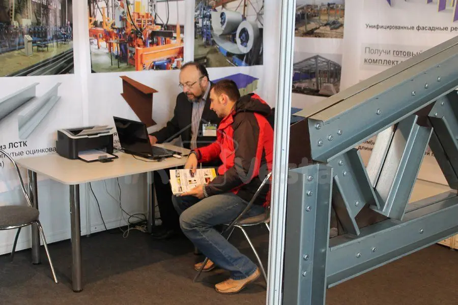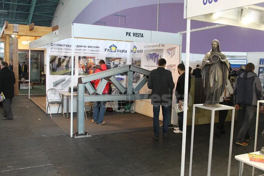 На выставке ПК "Веста" традиционно установила макет классический фермы из холодногнутых оцинкованных профилей. Кроме того, у всех потенциальных клиентов была возможность рассчитать мгновенную и точную стоимость на быстровозводимые здания в режиме реального времени через Интернет - в уникальной запатентованной онлайн платформе WebSteel. Можно было легко распечатать бесплатные эскизы с коммерческим предложением и техническим заданием на полнокомплектное здание из сэндвич панелей.
