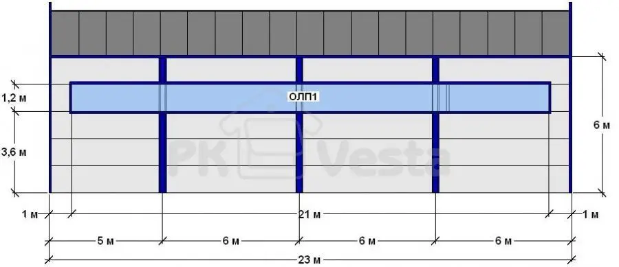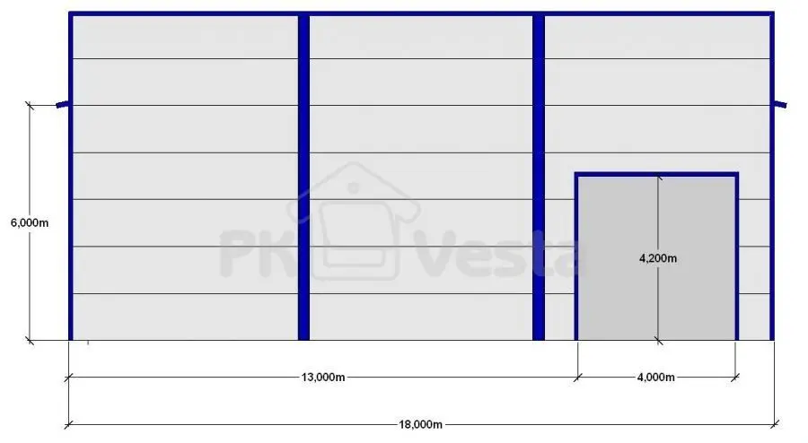 Легкий стальной каркас базируется на современных холодногнутых оцинкованных профилях (С-обр. и Z-обр., толщиной до 1,8 мм), составляющих колонны и трапециевидную ферму сверху, включая прогонную часть. Используются самые качественные строительные материалы (С350, 275 г/кв. м, 110 кг/куб. м).