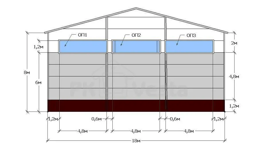 Полнокомплектное здание серии INDI было спроектировано в бесплатной онлайн-системе WebSteel. В производственном цеху предусмотрена опорная кран-балка (5 т). Для минимизации металлоемкости конструкции планируется изготовить каркас здания на базе холодногнутых оцинкованных профилей (ЛСТК) или использовать «гибридный вариант« (выполнить колонны из черного металла, а ферму – из ЛСТК). Пример строительства по похожей технологии можно посмотреть в видеоролике: