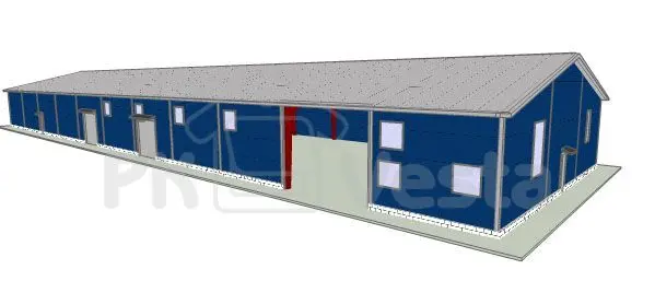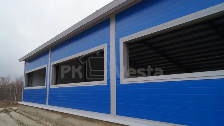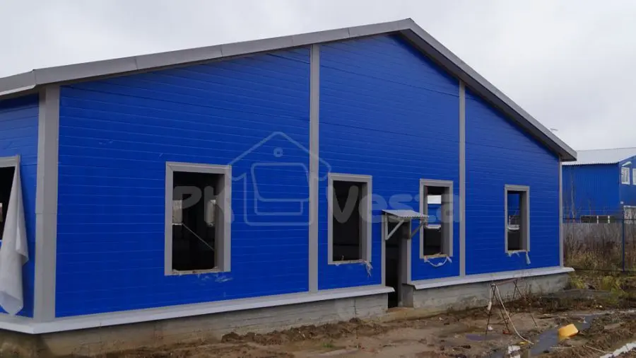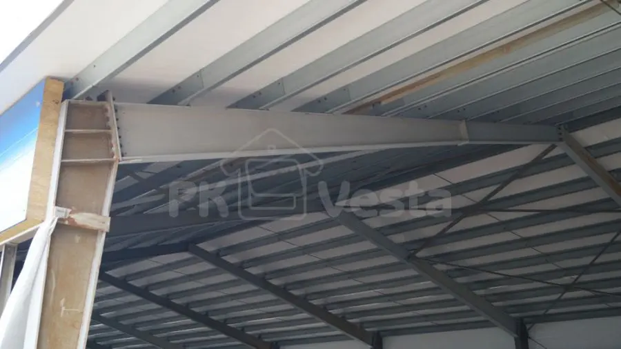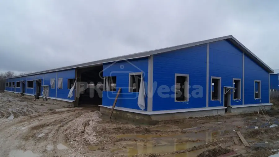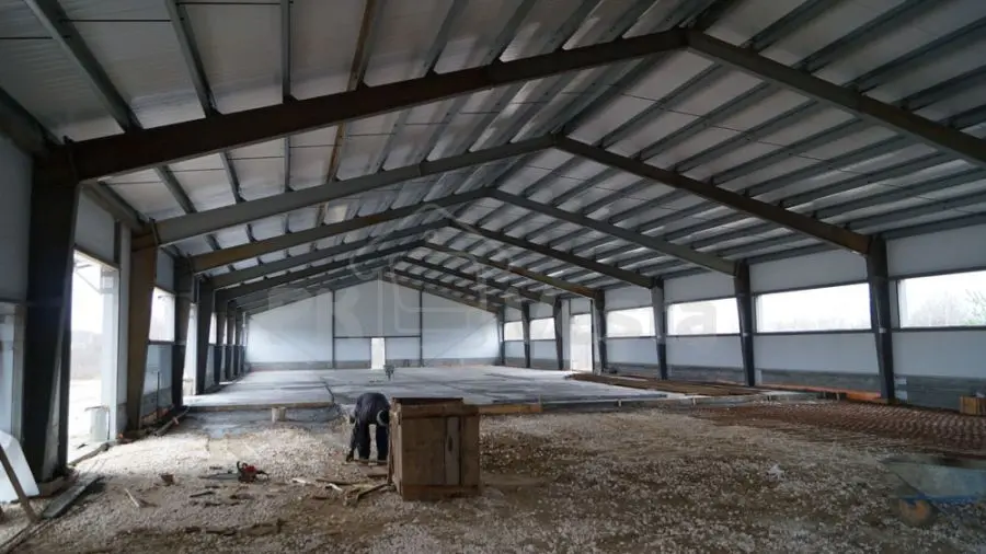 ПК «Веста» объявляет о начале заливки полов в быстровозводимом здании типографии в г. Егорьевск, Россия. Строение спроектировано на базе сварной балки переменного сечения из черного металла. По боковой стороне расположены три въезда, для оконных проемов предусмотрена усиленная конструкция (труба + оцинкованный профиль).