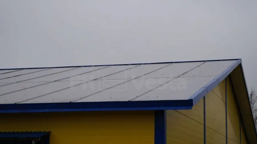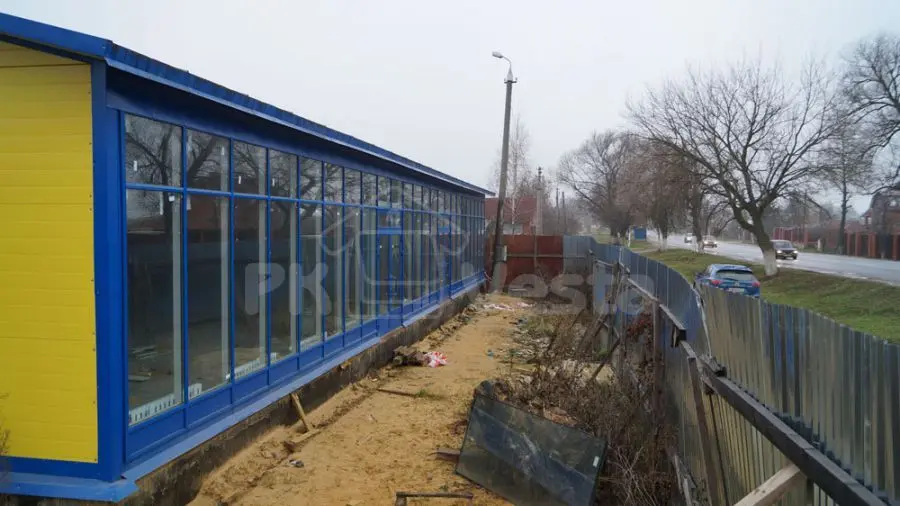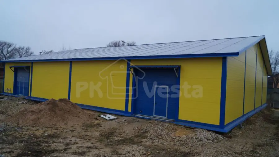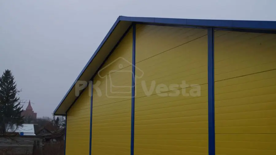ПК «Веста» объявляет о завершении монтажа здания минимагазина в г. Тула, Россия. Было спроектировано строение из сэндвич-панелей на базе сварной балки переменного сечения из черного металла. Вся прогонная часть была выполнена из оцинкованных профилей. На боковой стороне здания со стороны улицы оборудован оконный проем (стеклянный фасад), а со стороны двора — два проема с козырьком под секционные ворота.