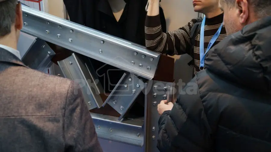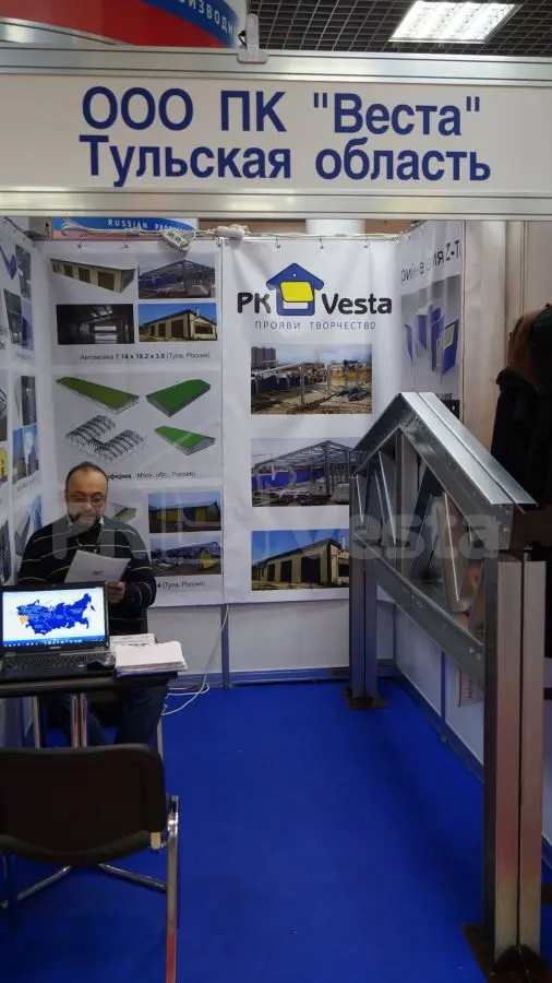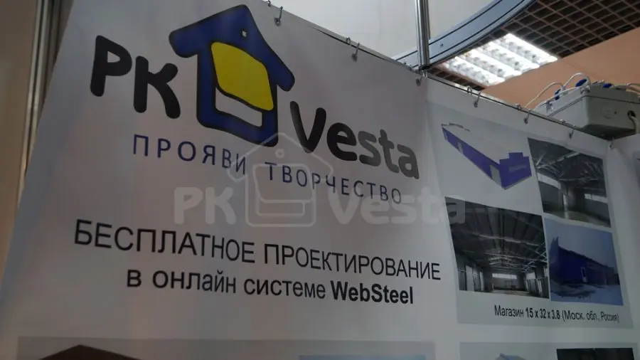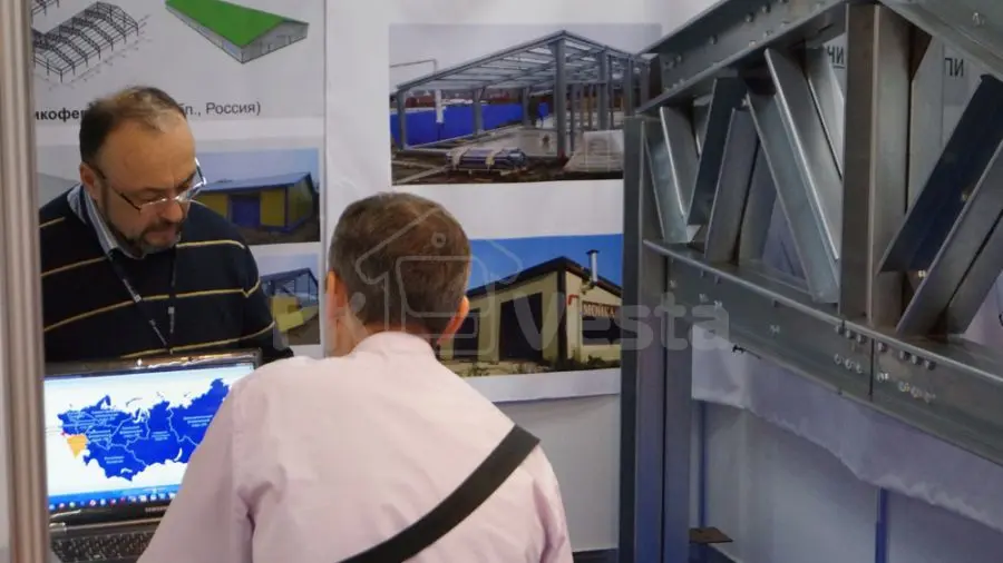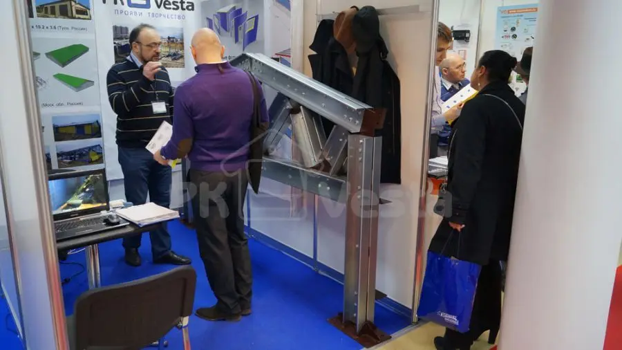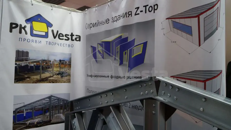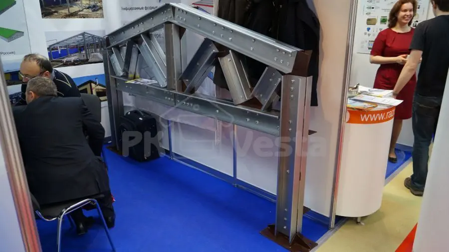 На стенде ПК «Веста» был представлен образец стального каркаса (рамы) из холодногнутых оцинкованных профилей серий INDI и Z-Top, пользующихся большим спросом среди профессионалов и конечных потребителей, занятых в коммерческой, промышленной и сельскохозяйственной отрасли России и СНГ. Такие конструкции применяются для строительства ангаров, складов, офисов, магазинов, ферм, цехов и т. д.