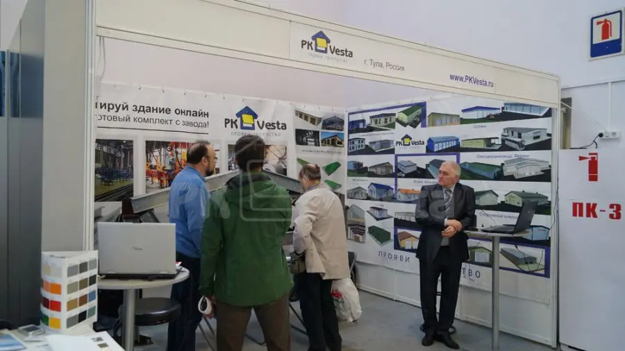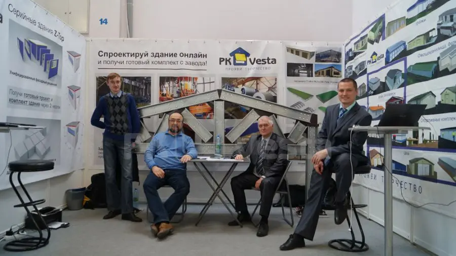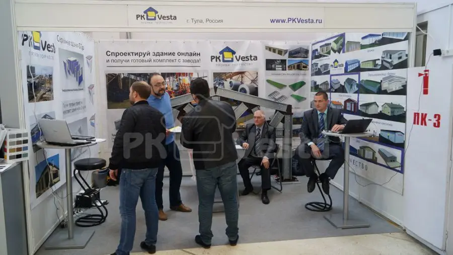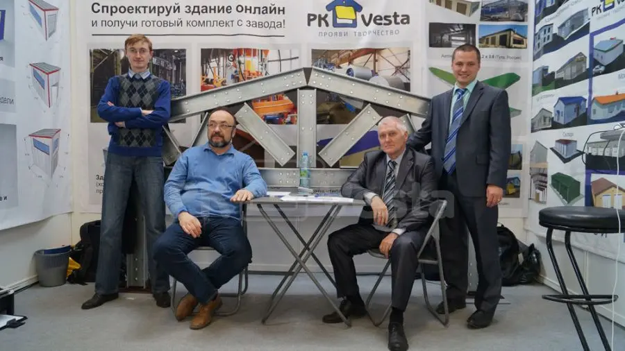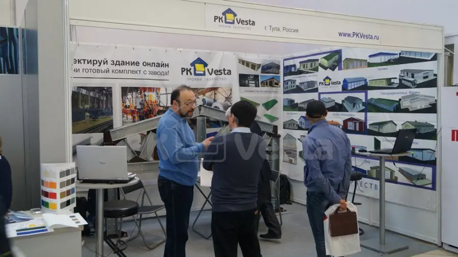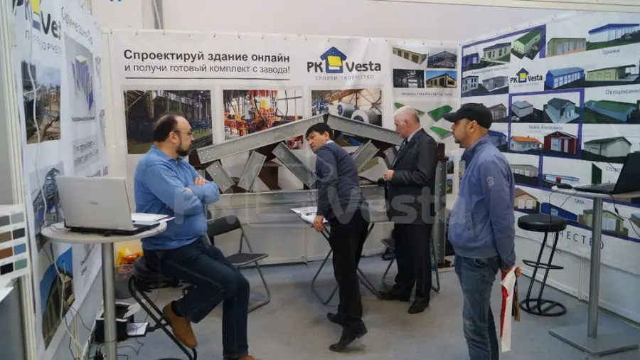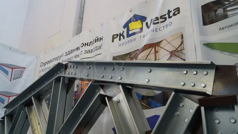 На стенде ПК "Веста" был представлен макет стального каркаса (рамы) из холодногнутых оцинкованных профилей. Такие конструкции применяются для строительства ангаров, складов, офисов, магазинов, ферм, цехов и т. д. Основные запросы были связаны с сельскохозяйственными объектами (свинофермами, коровниками, птичниками, кроликофермами и т. д.).