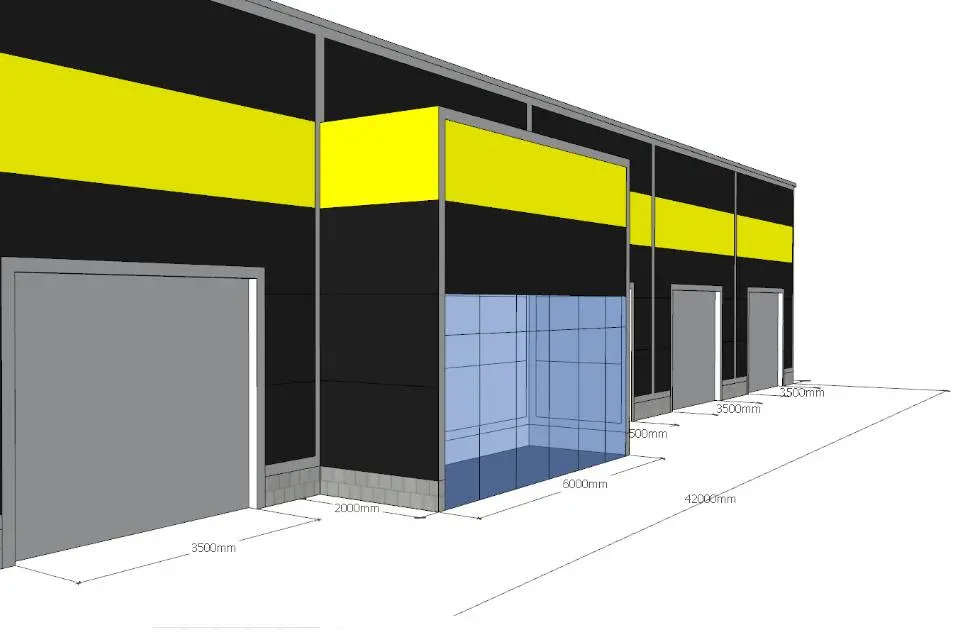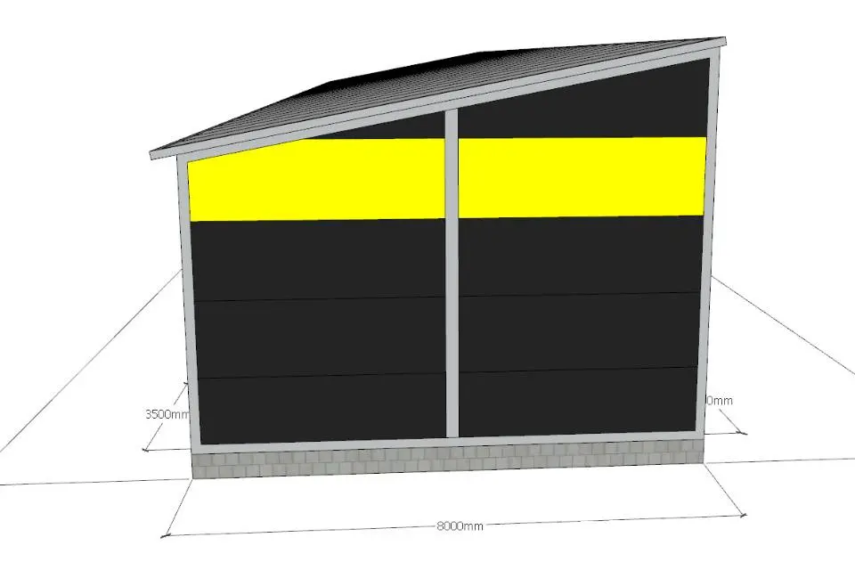 Внешний тепловой контур здания состоит из классических негорючих сэндвич панелей (100мм на стену и 150мм на кровлю) В комплект здания включены все фасонные и крепежные элементы. Для фасадов выбраны нестандартные цвета: 9005 (Черный) и 1018 (Желтый) Внутри автомойки клиент установит современное немецкое оборудование, аналогов которого нет в тульской области. Здание рассчитано под установку на ЖБ плите.
