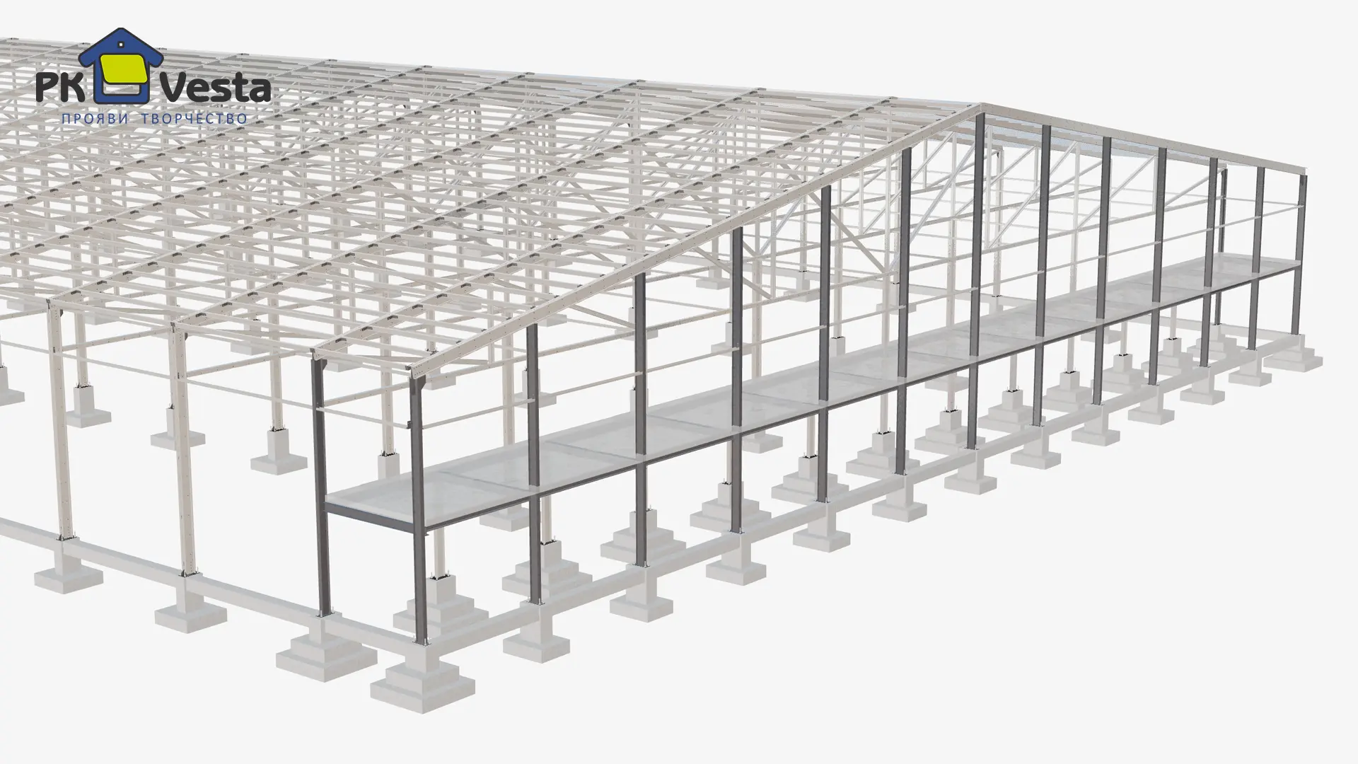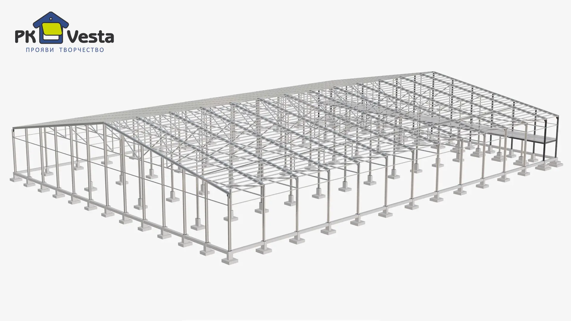 Быстровозводимое фруктохранилище было рассчитано и визуализировано в бесплатной онлайн системе WebSteel.