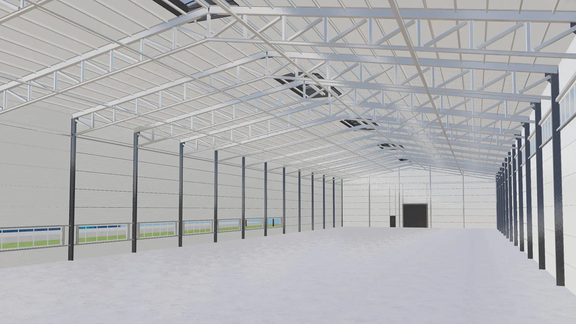 Стальной каркас 28Ш х 102Д х 7.2В был рассчитан на базе классической ГИБРИДНой технологии (применение черного металла для несущих колонн и ЛСТК – для ферменных конструкций и прогонов) Для клиента важно было однопролётное исполнение без каких либо колонн внутри здания для размещения дорогостоящего оборудования, что дает полную свободу в возможной будущей перепланировке здания.