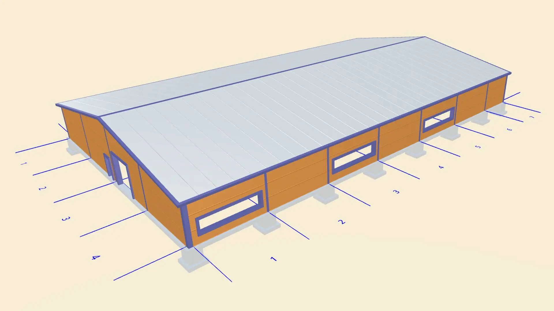 Быстровозводимое здание было рассчитано бесплатно в инновационной системе WebSteel, доступная каждому клиенту 24/7.
