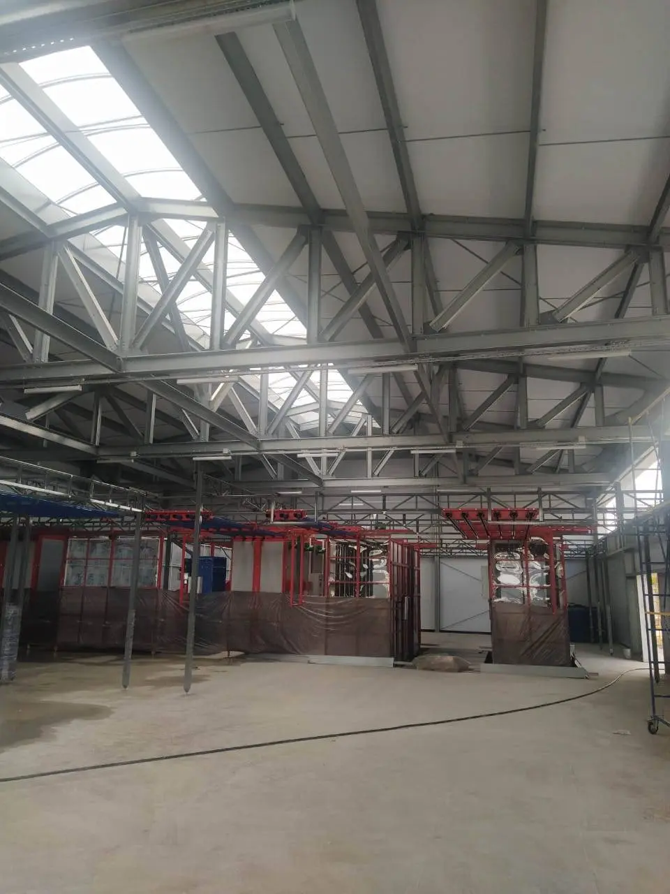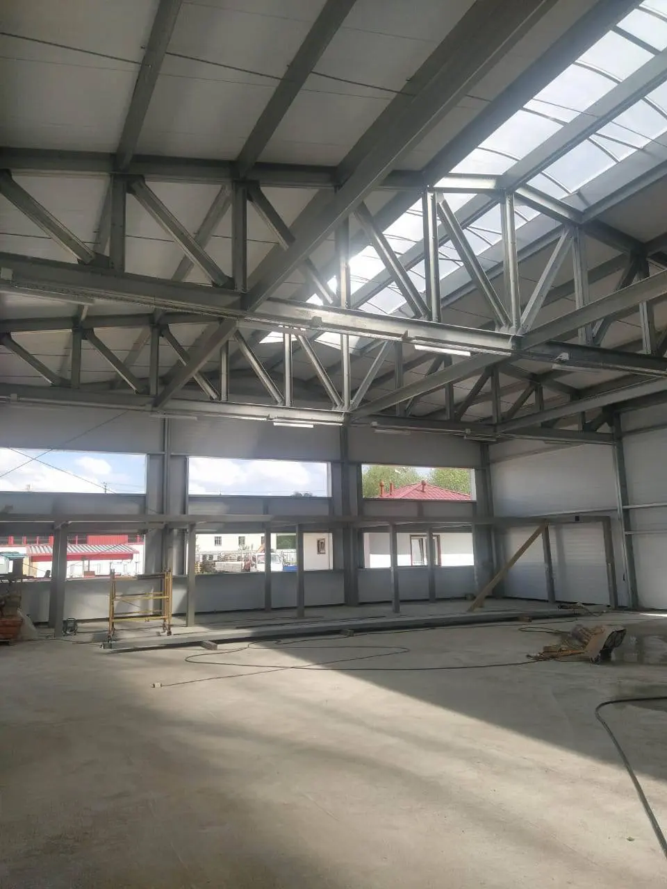 Весь несущий каркас с ферменными конструкциями был спроектирован полностью из ЛСТК (оцинкованный профиль) и собирался без каких-либо сварочных процессов. Применяется 100% болтовое соединение.