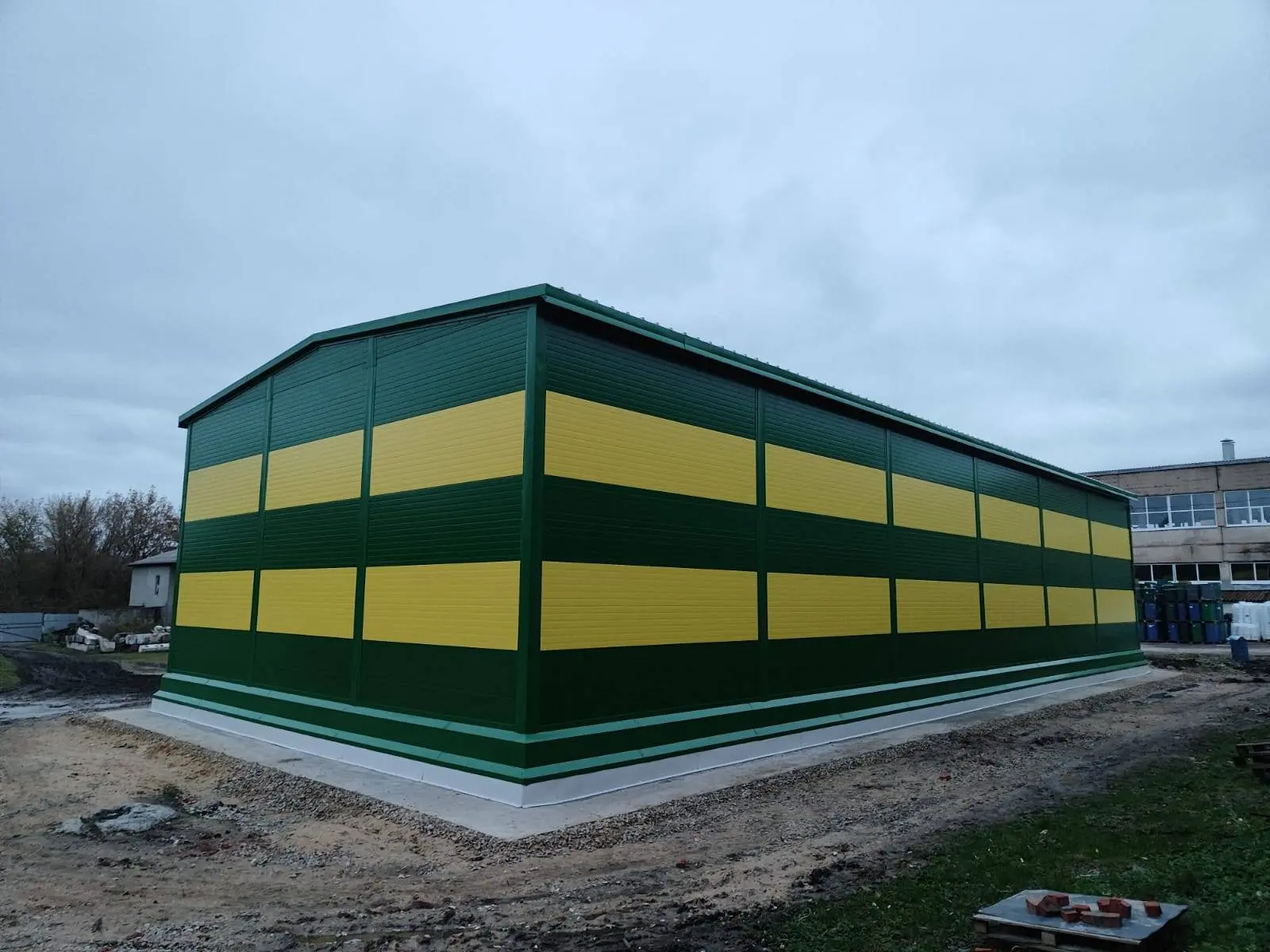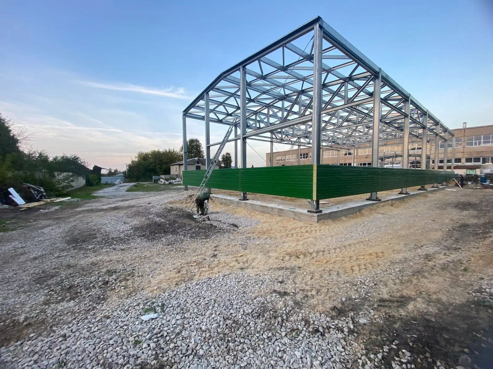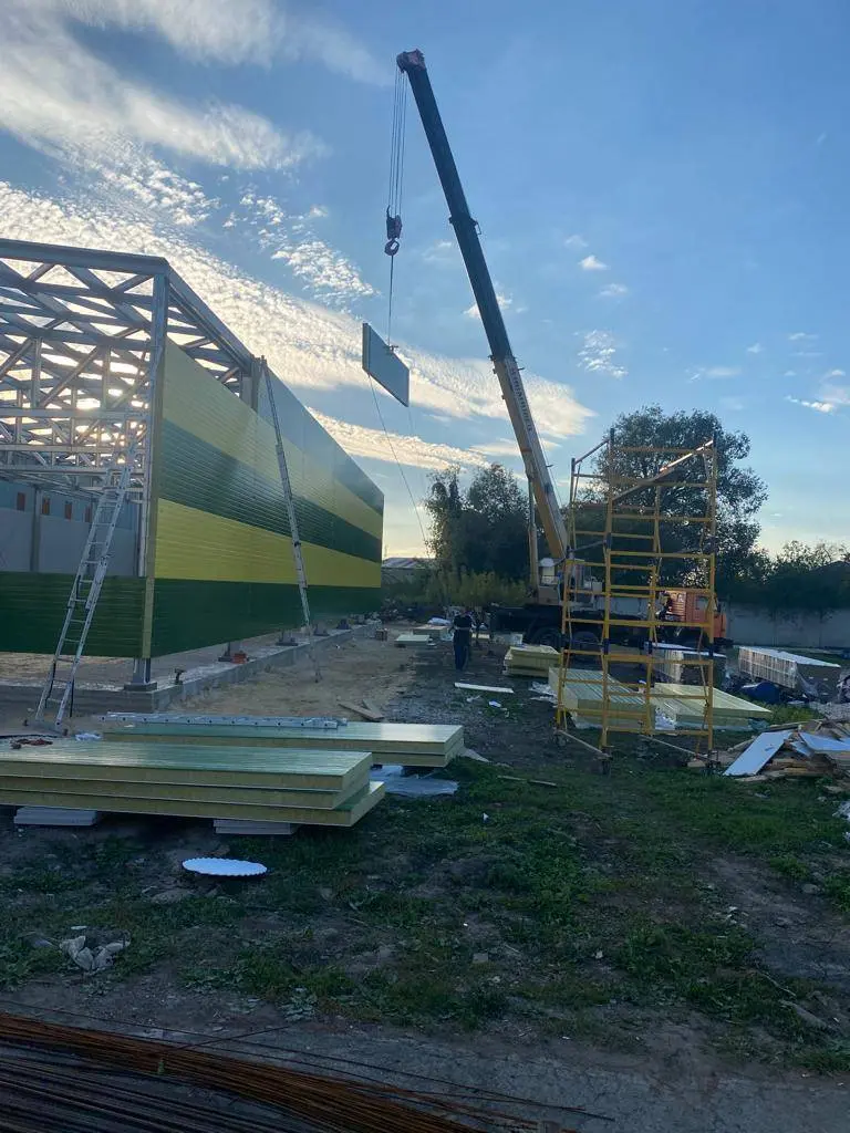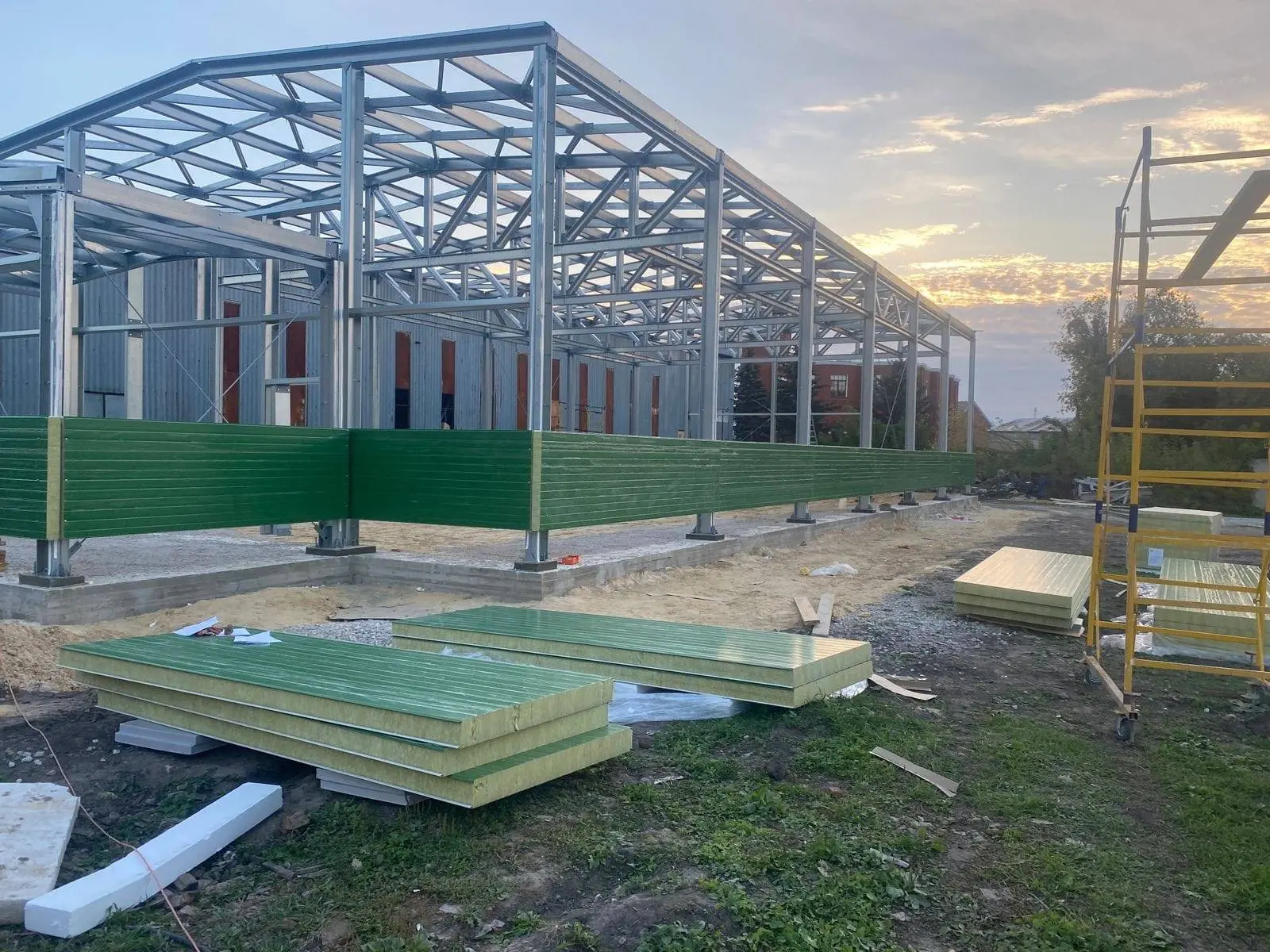 Склад из легких металлоконструкций был смонтирован в короткие сроки до 2-3 недель на базе современной технологии ЛСТК с учетом 100% болтового соединения и 100% защиты от коррозии. Каркас обшивался негорючими сэндвич панелями (стены – 120мм и кровля – 150мм, минвата) Из-за резкого расширения производственных мощностей уже в декабре 2023г. клиент планирует установить новые стеллажные системы и заполнить склад свое продукцией.