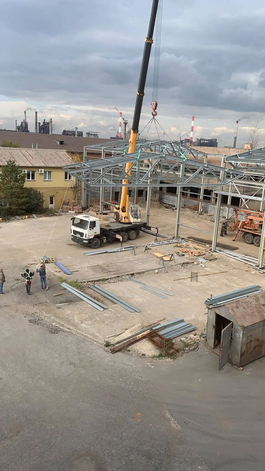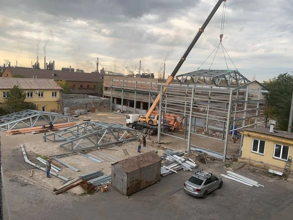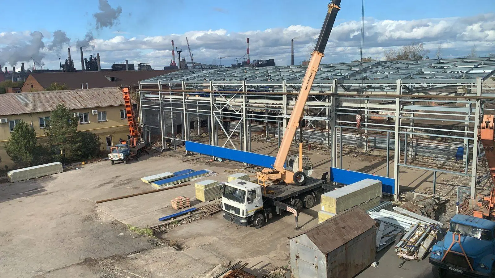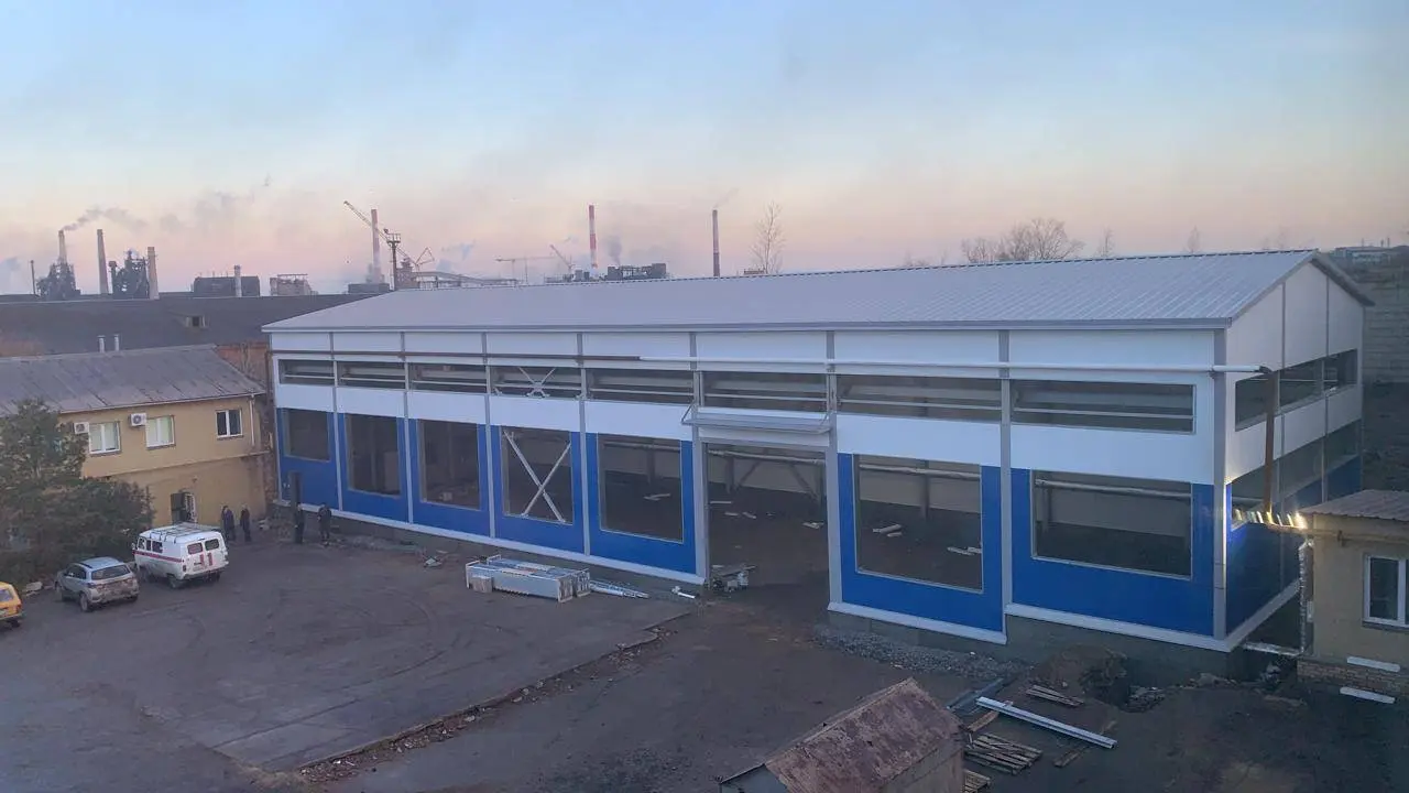 Быстровозводимый цех 15.5Ш х 44Д х 8В, произведенный на Тульском заводе, был успешно смонтирован в кратчайшие сроки до 3-4 недель на базе ГИБРИДНой системы (ЛМК+ЛСТК) и классических негорючих сэндвич панелей. Установлена и запущена новая кран балка с грузоподьемностью 5.2т. Весь стальной каркас собирался без сварки полностью на 100% болтовом соединении. Вся верхняя часть каркаса (фермы и прогоны) имеют 100% защиту от коррозии. В ближайшее время планируется установка стеклопакетов по длиной стороне здания, что позволит обеспечить максимальное естественное освещение рабочим внутри здания. В декабре в соответствии с утвержденным графиком будет полная ввод здания с эксплуатацию с началом работы на новом технологической линии по изготовлению металлоконструкции (новое инжиниринговое подразделение для обеспечения нужд ближайшего известного Магнитогорского Металлургического завода)