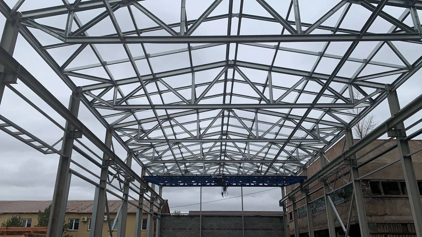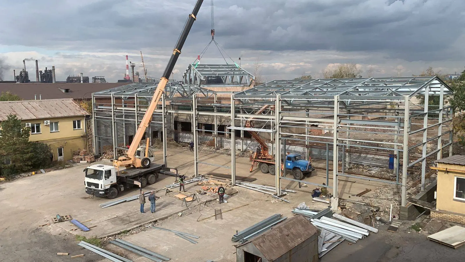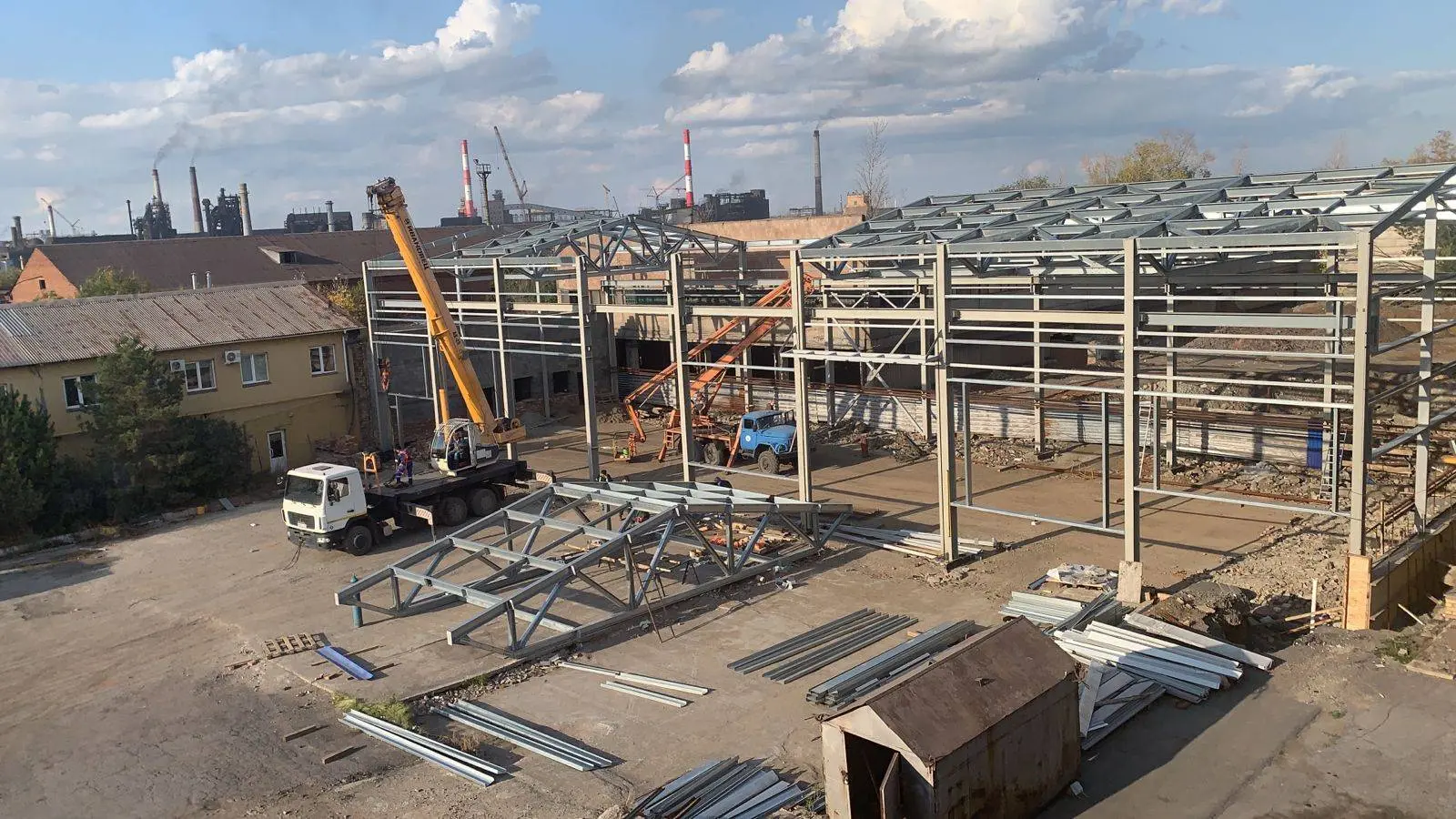 Быстровозводимый цех 15.5Ш х 44Д х 8В, произведенный на Тульском заводе, был успешно смонтирован в кратчайшие сроки до 3-4 недель на базе ГИБРИДНой системы (ЛМК+ЛСТК) и классических негорючих сэндвич панелей. Установлена и запущена новая кран балка с грузоподьемностью 5.2т. Весь стальной каркас собирался без сварки полностью на 100% болтовом соединении. Вся верхняя часть каркаса (фермы и прогоны) имеют 100% защиту от коррозии. В ближайшее время планируется установка стеклопакетов по длиной стороне здания, что позволит обеспечить максимальное естественное освещение рабочим внутри здания. В декабре в соответствии с утвержденным графиком будет полная ввод здания с эксплуатацию с началом работы на новом технологической линии по изготовлению металлоконструкции (новое инжиниринговое подразделение для обеспечения нужд ближайшего известного Магнитогорского Металлургического завода)