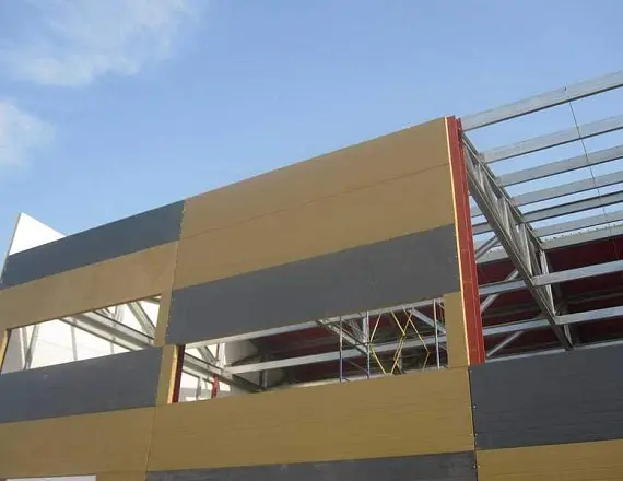 Обшивка:сэндвич панели (минвата, пенопласт и PIR), полистовая/поэлементная сборка (минвата), проф лист (холодный вариант), вентилируемые фасады (металический кассеты, композитные кассеты и керамогранит – из минваты) и мембранная кровля (минвата)