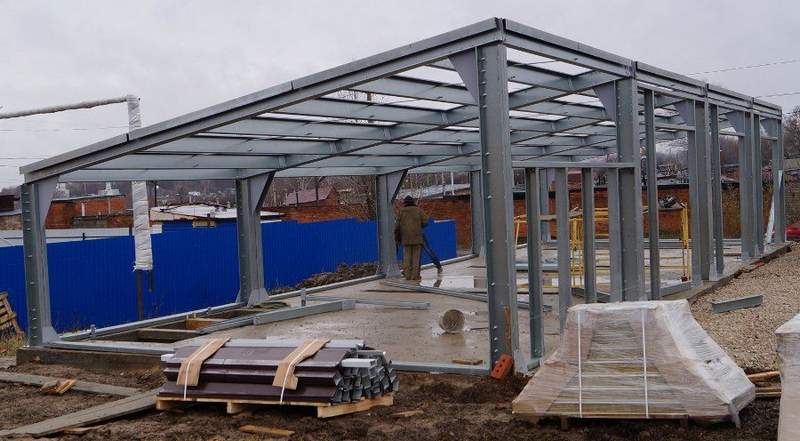 Срок монтажа здания составляет от 3 до 8 недель. В среднем сборка легких металлоконструкций площадью 500-600 кв. м занимает 2 недели. Работы по возведению ограждающих конструкций со всеми дополнительными деталями (ворота, двери, доборные и декоративные элементы, козырьки и т. д.) длятся, как правило, 2-3 недели.