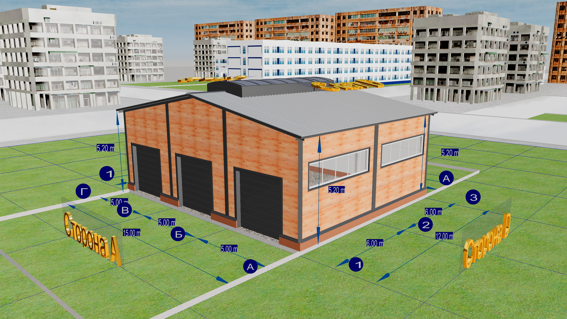 205. Быстровозводимый гараж 18Ш х 12Д х 4В из ЛСТК для хранения машин в г. Тула, Россия.