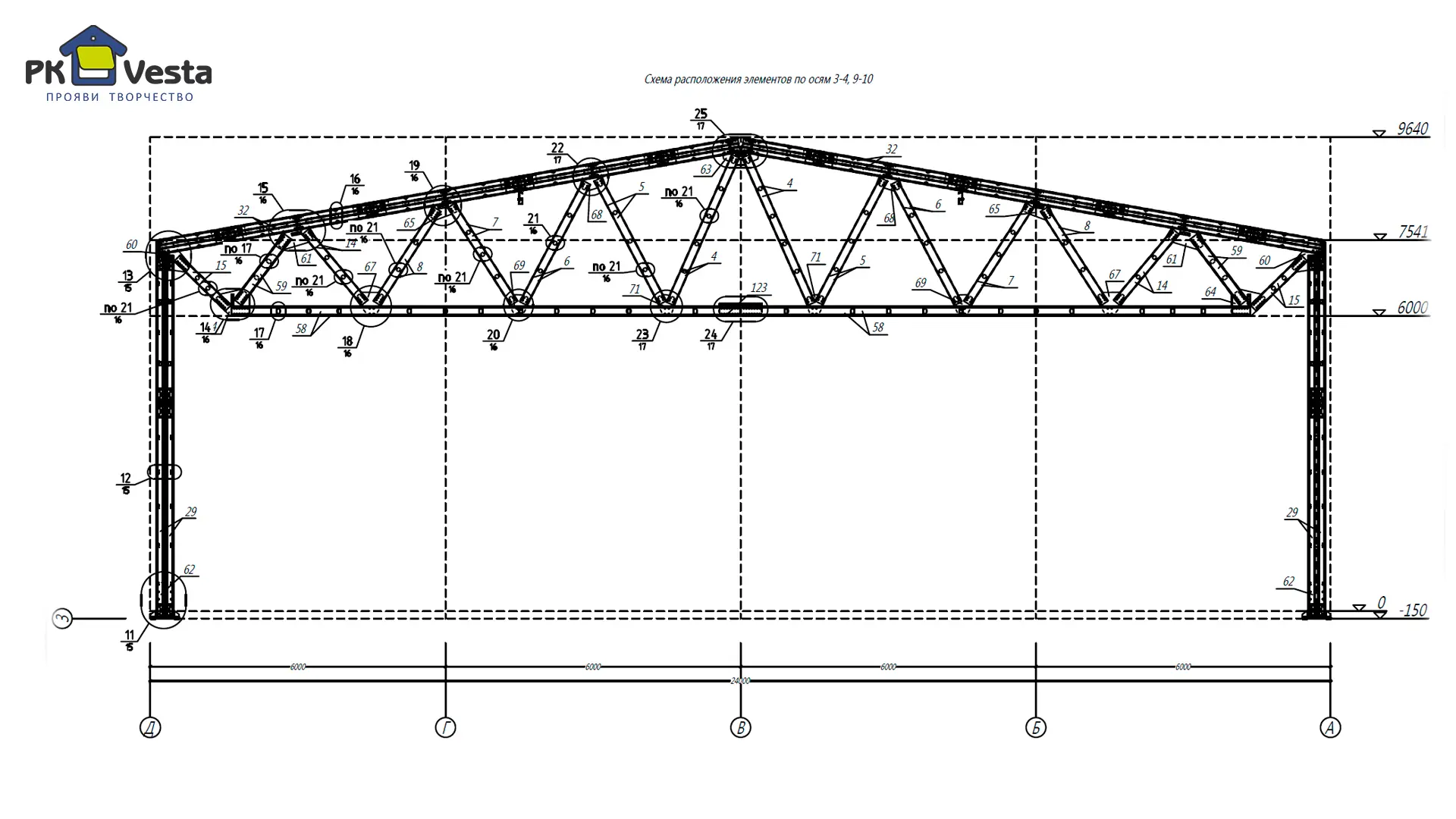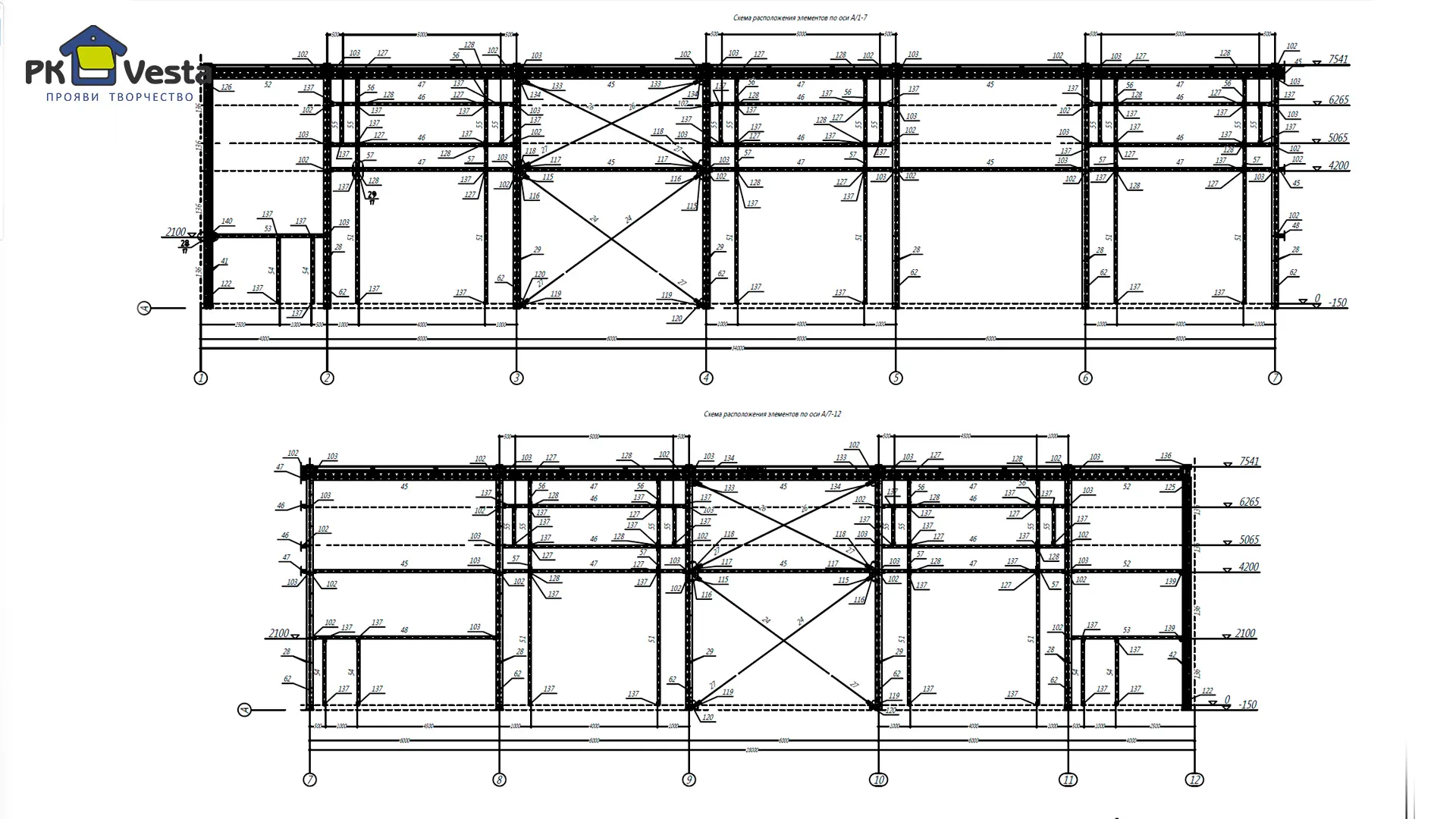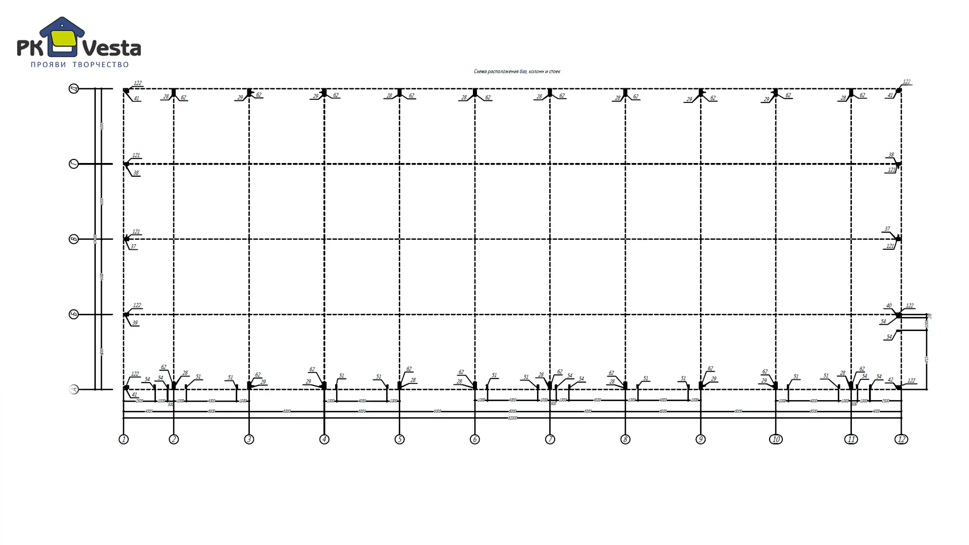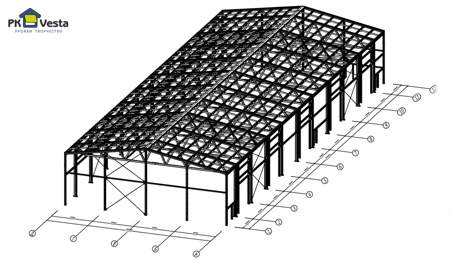 - Все несущие конструкции (колонны, фермы, прогоны, диагональные связи, болты и т.д.)