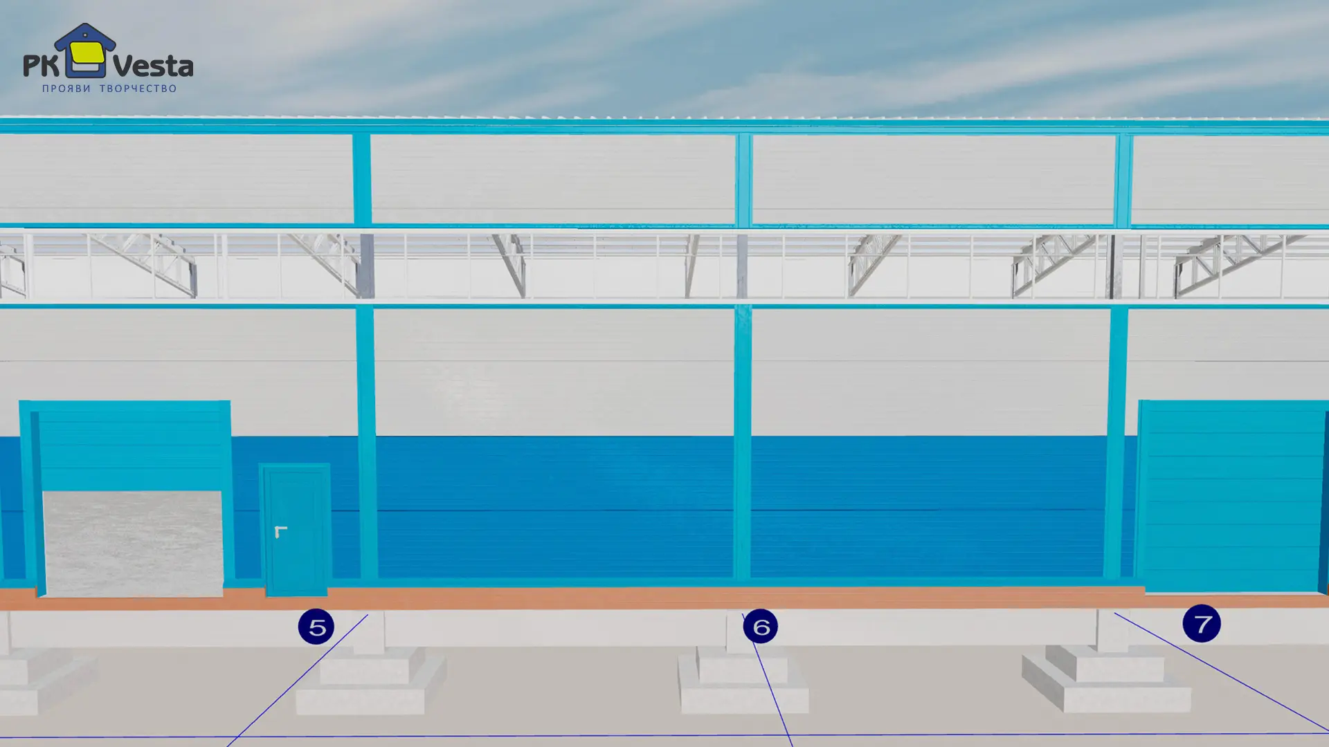 ВАЖНО! Внутри зданий - колонны отсутствуют (полностью свободная планировка) Применена технология ЛСТК (колонны, фермы и прогоны – сделаны из холодногнутого оцинкованного профиля на базе прочных и высокопрочных марок стали С350 и С390)