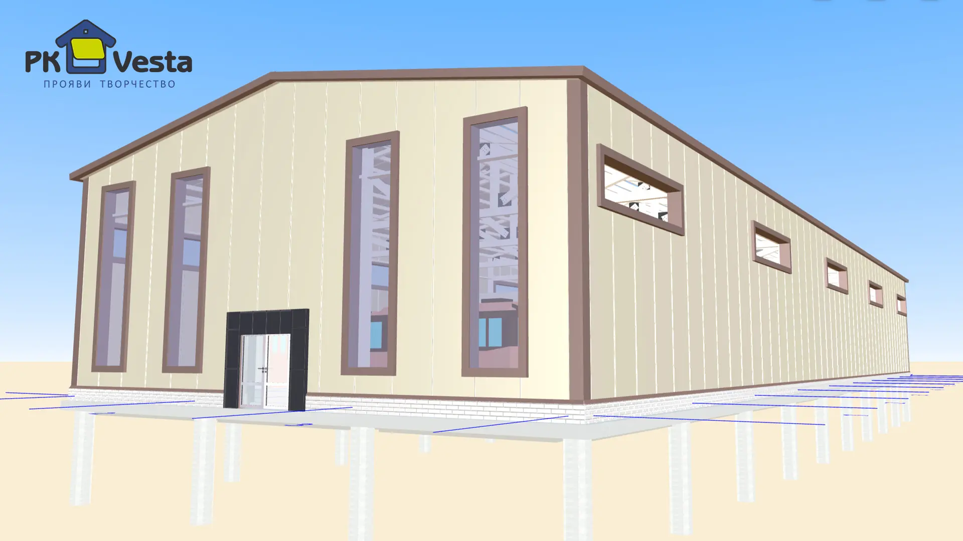 Легкий каркас обшивается негорючими сэндвич панелями (стены – 60мм и кровля 80мм)